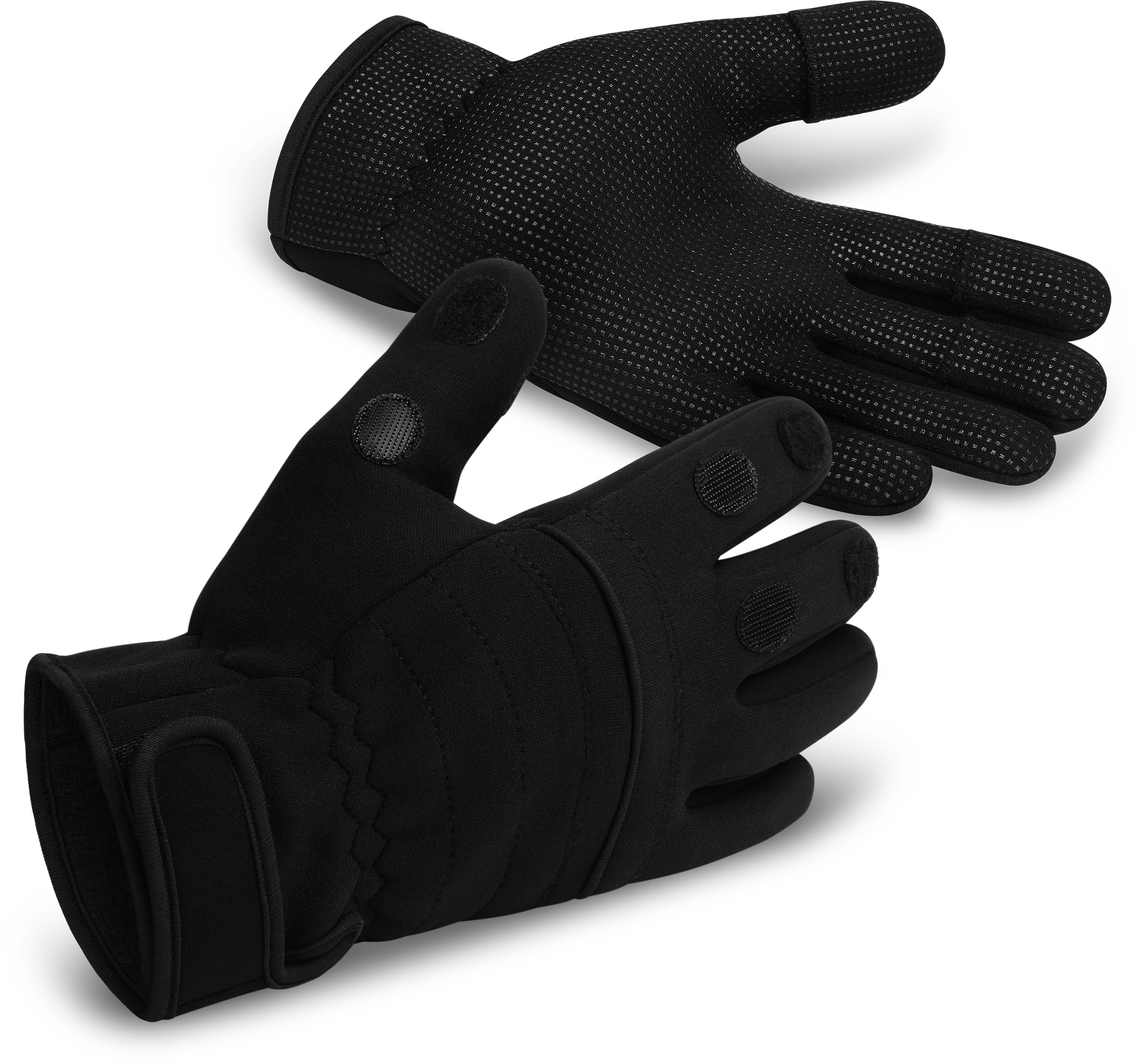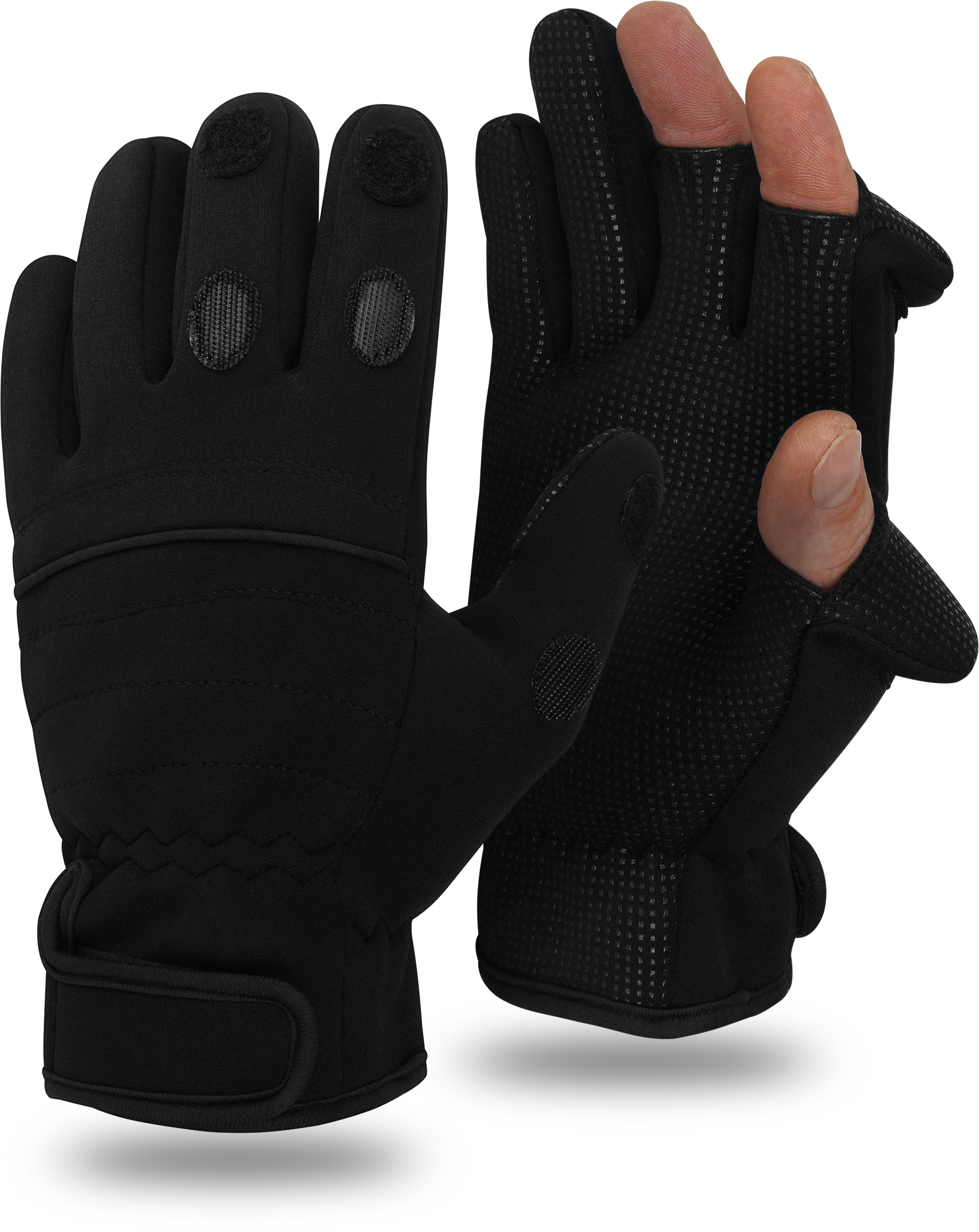 Kalt am Wasser? Mit diesen Thermo-Angelhandschuhen bleibst du warm und hast trotzdem die nötige Bewegungsfreiheit! Aus elastischem Neopren, mit rutschfester Gummi-Innenseite für sicheren Halt. Die Fingerspitzen von Daumen, Zeige- und Mittelfinger klappst du einfach um, wenn du feine Arbeiten erledigen musst. Der Klettverschluss am Handgelenk hält Kälte draußen. Tipp: Lieber eine Größe größer bestellen, falls du unsicher bist!