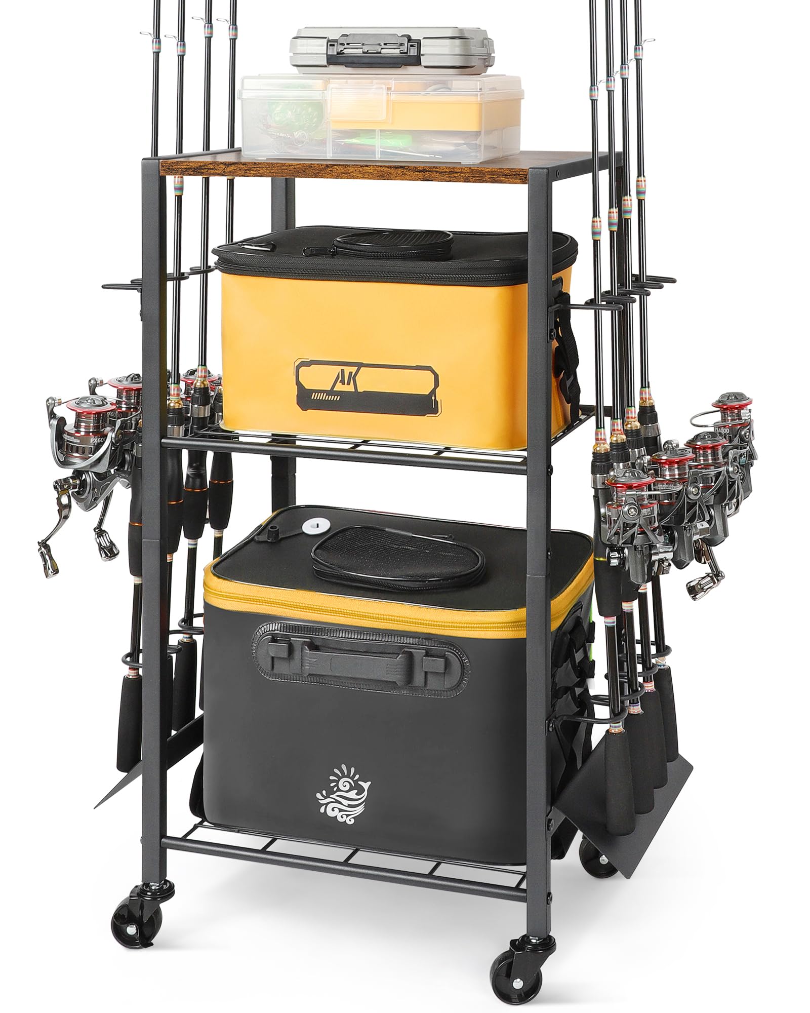 4-etagiger Angelrutenhalter Für 10 Ruten - Mobiler Ständer Mit Rollen