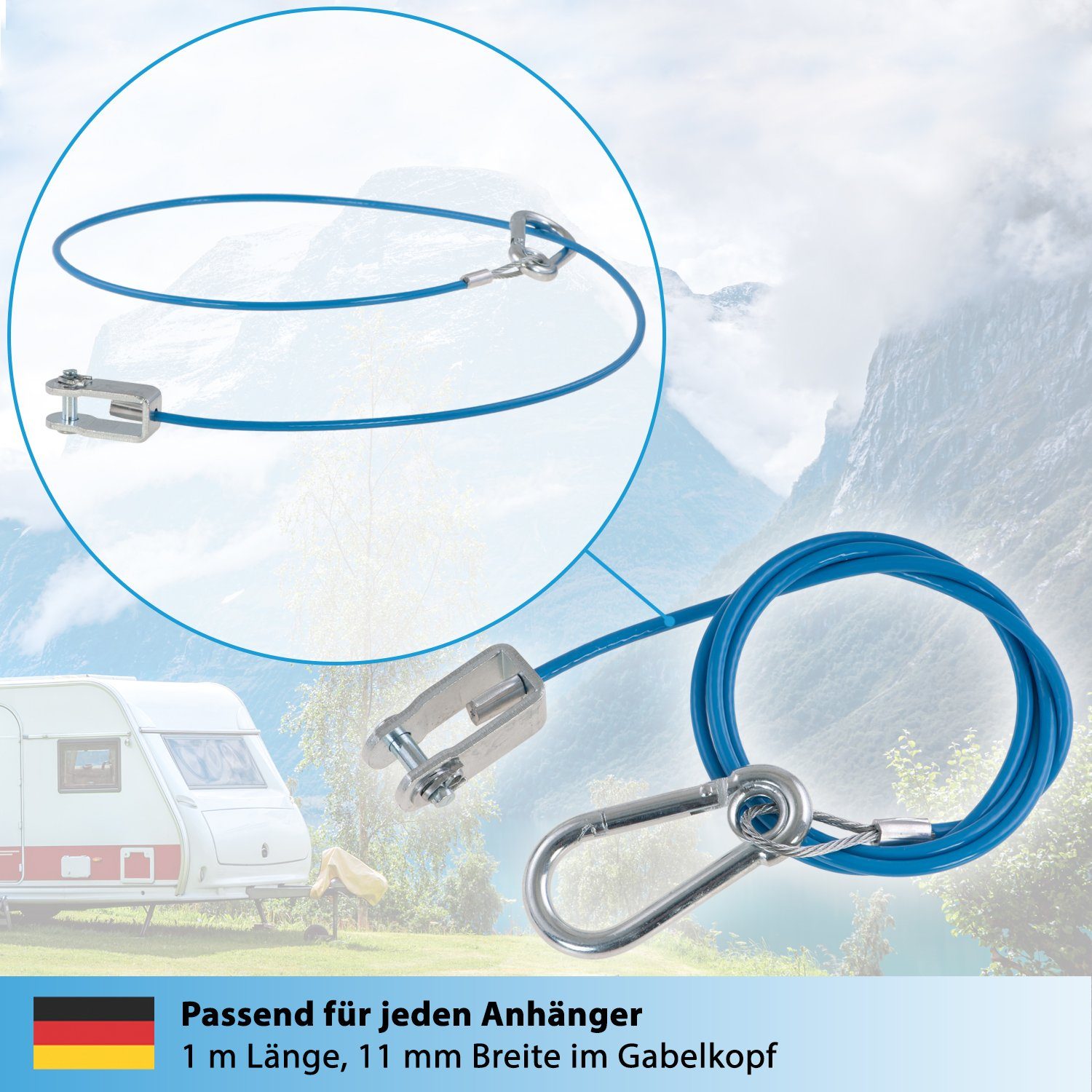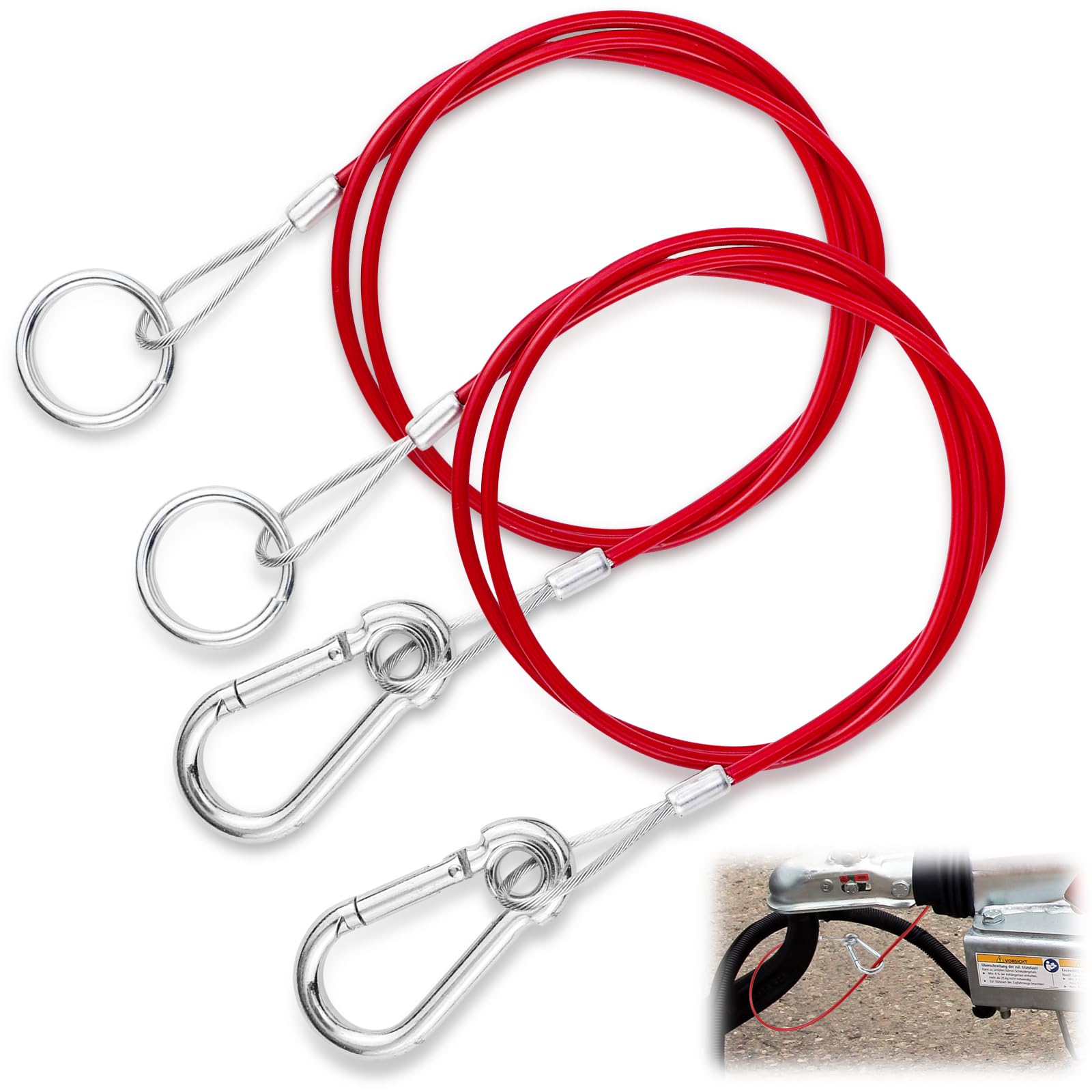 Safety first! Dieses Abreißseil für Anhänger ist ein absolutes Muss für jeden, der regelmäßig Anhänger oder Wohnwagen zieht. Das 1 Meter lange Seil besteht aus einer robusten Edelstahl-Außenschicht mit PVC-Umantelung und hält einer Zugkraft von satten 400 kg stand. Im Falle einer unbeabsichtigten Trennung löst es sofort die Sicherheitsbremse des Anhängers aus - das kann im Ernstfall Leben retten! Die Enden sind mit stabilen Metallhaken und -ringen versehen, die einfach zu befestigen sind und ein schnelles Lösen ermöglichen. Kein lästiges Werkzeug nötig! Das Seil ist korrosionsbeständig und hält auch bei widrigen Wetterbedingungen. Egal ob für Autoanhänger, Pferdeanhänger, Boote oder Wohnmobile - dieses Sicherungsseil ist vielseitig einsetzbar und gibt dir das beruhigende Gefühl, dass alles sicher ist. Einfach montieren, einhaken und losfahren - mit dem guten Gewissen, dass du auf der sicheren Seite bist.