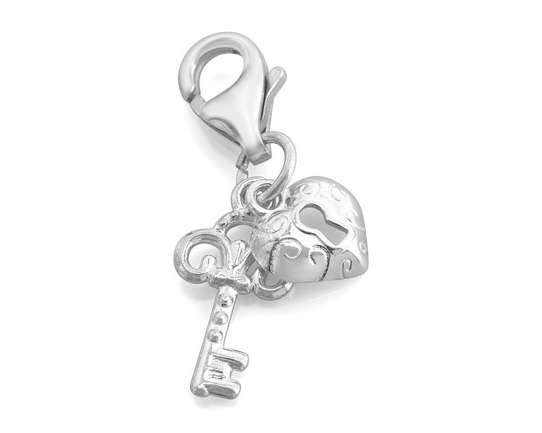 Zauberhafter Charm-Anhänger aus 925er Sterlingsilber! Das romantische Herz mit Schlüssel-Motiv symbolisiert Liebe und Vertrauen! Verziert mit funkelnden Zirkonia-Steinen - glitzert wunderschön! Größe ca. 3,5cm - perfekt für Armband oder Kette! Mit Karabiner-Verschluss - einfach zu befestigen! Kommt in hübscher Geschenkverpackung - ideal zum Verschenken! Für besondere Anlässe oder einfach als Liebesbeweis! Ein zeitloses Schmuckstück das immer gefällt! Mach dir oder deiner Liebsten eine Freude!