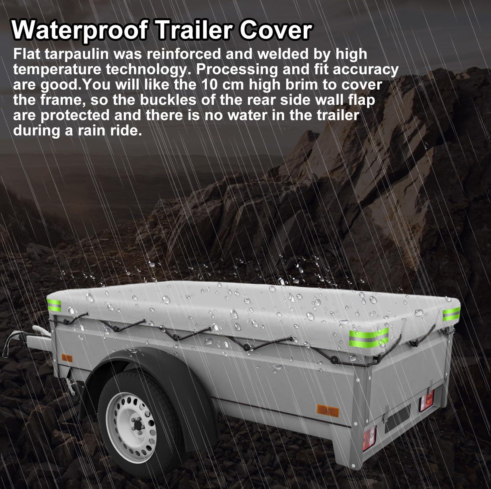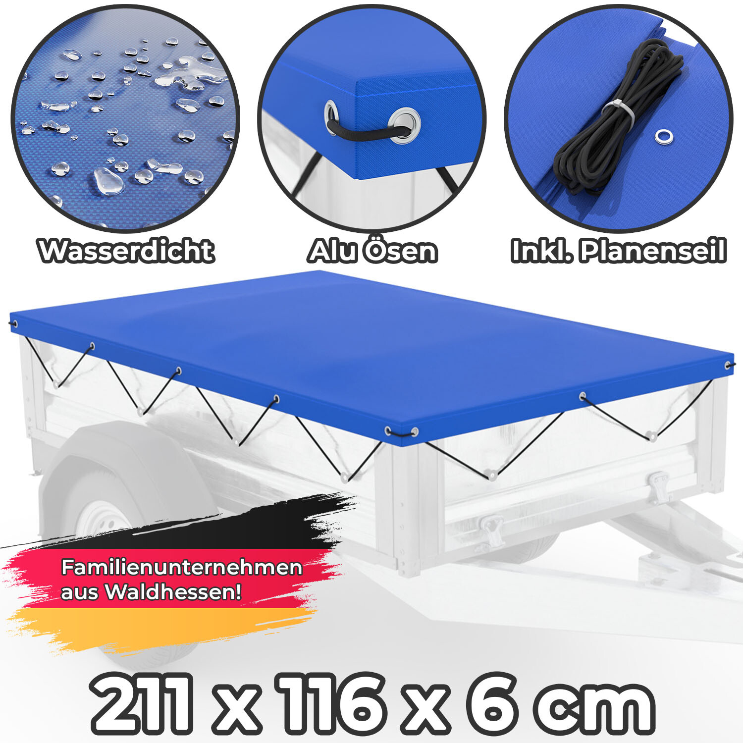 Dein Anhänger verdient den besten Schutz! Diese robuste Anhängerplane in den Maßen 210x114x10cm passt perfekt für Standard-Anhänger und schützt deine Ladung zuverlässig. Aus hochwertigem 420D Oxford-Material mit PVC-Beschichtung ist sie wasserdicht, winddicht und UV-beständig. Mit 13cm hohem Außenrand sitzt die Plane bombenfest, auch bei schneller Fahrt. Die verschweißten Nähte und Aluminiumösen sorgen für maximale Stabilität. Das reflektierende Design an den Ecken erhöht die Nachtsichtbarkeit. Im Lieferumfang ist ein 8m Verstärkungsseil enthalten für zusätzliche Sicherung. Bei 750kg Nutzlast kannst du dich auf diese Plane wirklich verlassen. Ganzjährig einsetzbar - ob bei Regen, Schnee oder praller Sonne. Deine Ladung bleibt sicher und trocken, egal wohin die Reise geht!