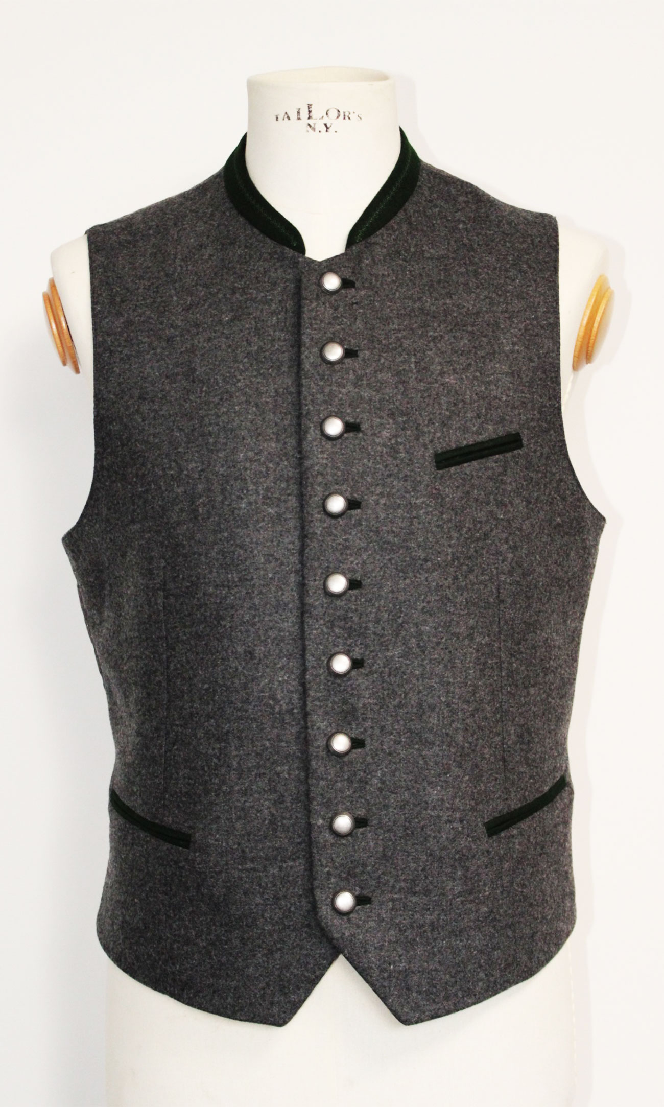 Die edlen Altsilber-Knöpfe runden das traditionelle Design harmonisch ab. Ob zur Lederhose, mit Sakko oder lässiger Jeans - diese Weste passt immer.