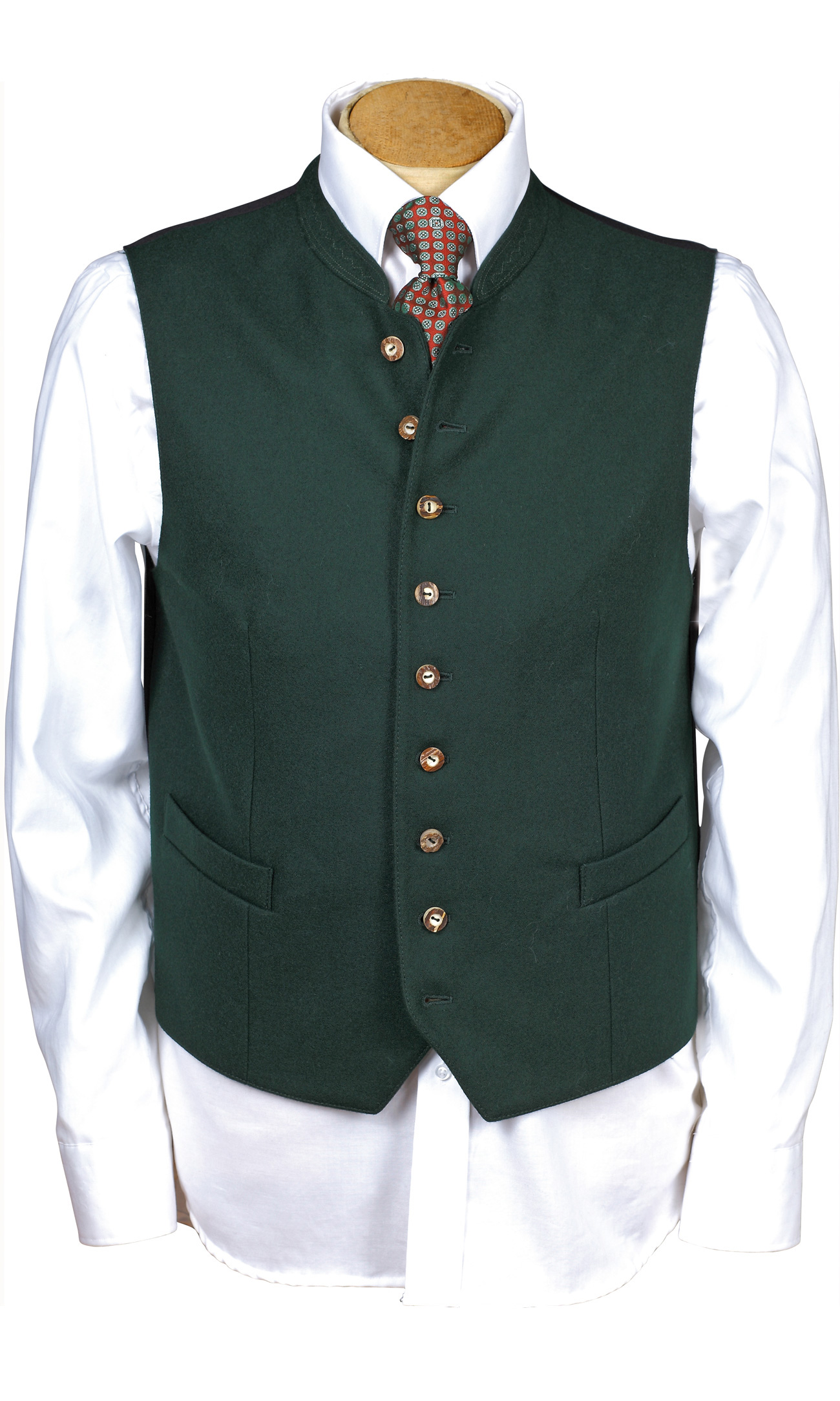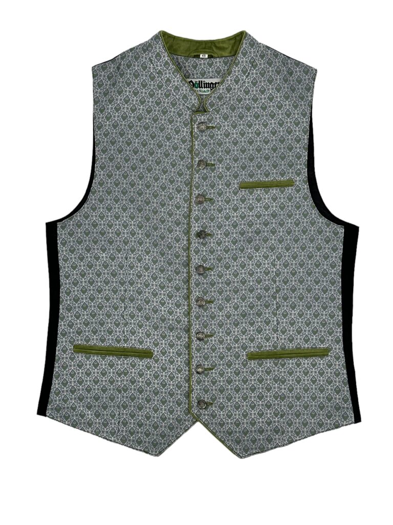 Aus hochwertigem Jacquard-Stoff mit dezenter Struktur sieht sie einfach klasse aus. Der 2cm hohe Stehkragen unterstreicht den klassischen Trachten-Stil perfekt.