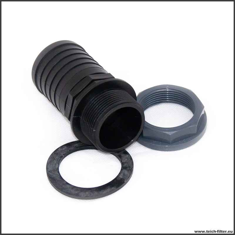 Anschraub-Durchführung Kunststoff Grau - Für 60mm Loch & 2 Zoll Gewinde, Mit Dichtung