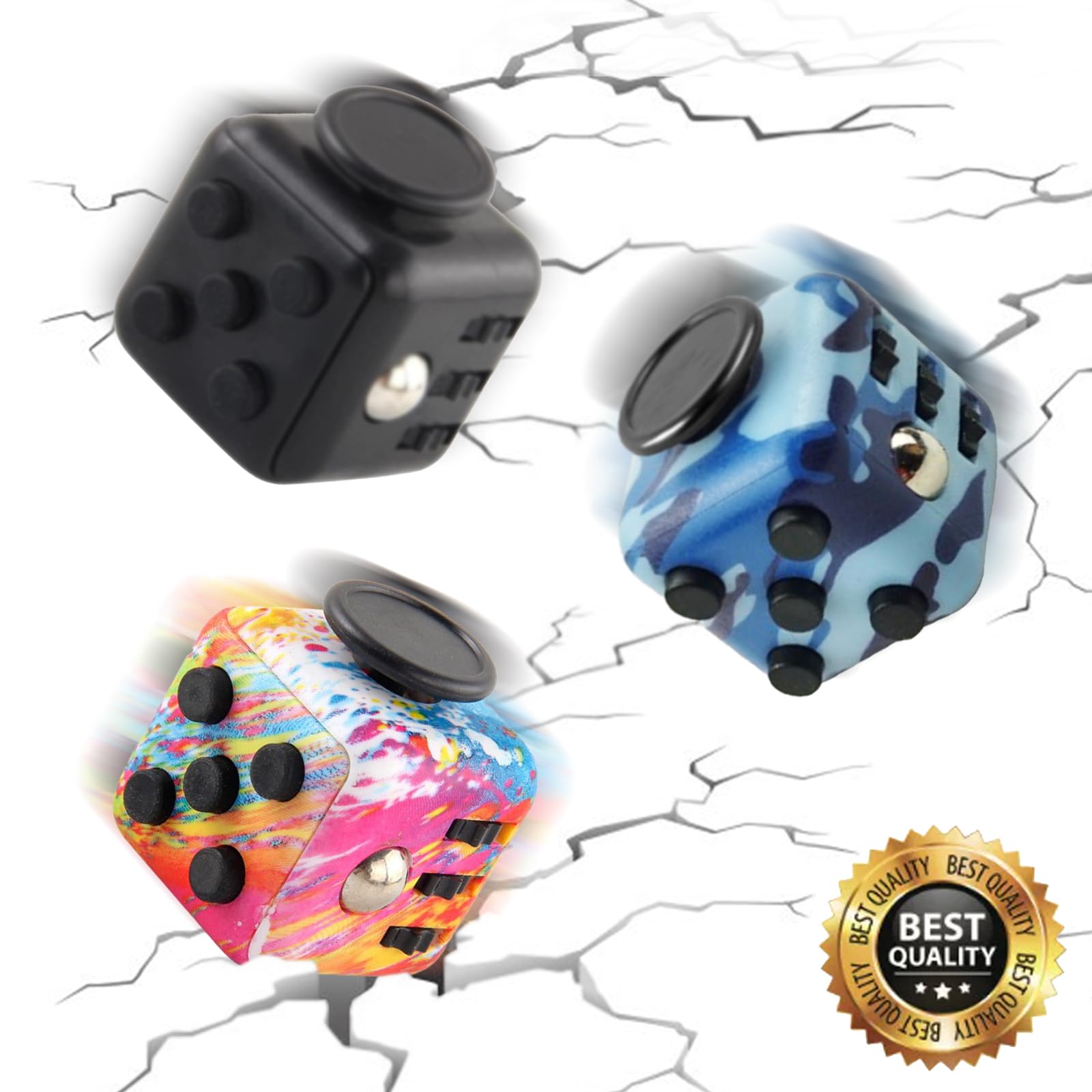 Anti-Stress Würfel 3er Set - Fidget Toy Mit 6 Funktionen