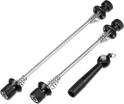 Deine teuren Fahrradräder sicher vor Dieben schützen - mit diesem cleveren Anti-Diebstahl-System! Die speziellen 7-Lobe Skewer mit Sicherheitsschlüssel verhindern, dass jemand einfach deine Räder klauen kann. Denn ohne den passenden Spezialschlüssel kriegt das niemand auf! Vorne passt für 112mm, hinten für 148mm - ideal für die meisten modernen Fahrräder. Die Binder Bolzen sind M6 x 45mm und halten bombenfest. Das geniale Federmechanismus-Design sorgt dafür, dass die Federn beim Reifenwechsel nicht verloren gehen. Super einfach zu montieren und die Qualität ist echt top - das hält ewig! Und falls du mal den Schlüssel verlieren solltest: Einfach nach ASIN: B0BXY1M649 suchen und Ersatz bestellen. So kannst du beruhigt dein Rad in der Stadt abstellen, ohne ständig Angst vor Raddieben haben zu müssen. Einfach ein muss für jeden Stadtradler!