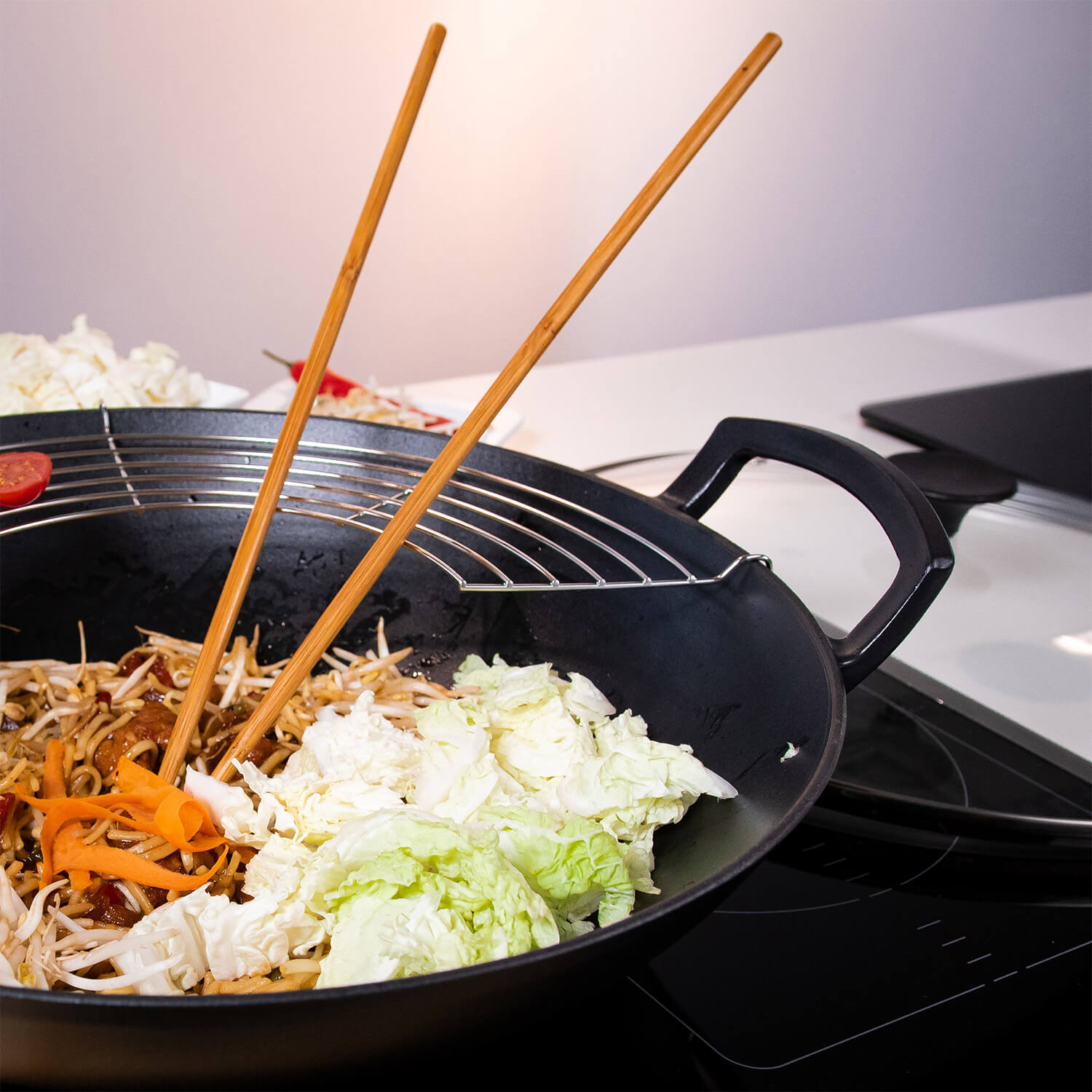Kochst du gerne asiatisch? Dieser 24cm KESOTO Wok ist dein neuer bester Freund in der Küche! Mit praktischem Glasdeckel und Antihaftbeschichtung - nichts brennt mehr an. Die dicke Gusseisen-Konstruktion verteilt die Hitze super gleichmäßig. Perfekt zum Braten, Schmoren, Frittieren - einfach für alles! Der ergonomische Griff bleibt kühl, keine Verbrennungen mehr. Passt auf alle Herdarten: Induktion, Ceran, Gas. Einfach zu reinigen und sieht dabei noch stylisch aus. Ob stir-fry Gemüse, knuspriges Fleisch oder leckere Soßen - mit diesem Wok wird jedes Gericht zum Restaurant-Erlebnis. Einfach heiß werden lassen und loskochen!
