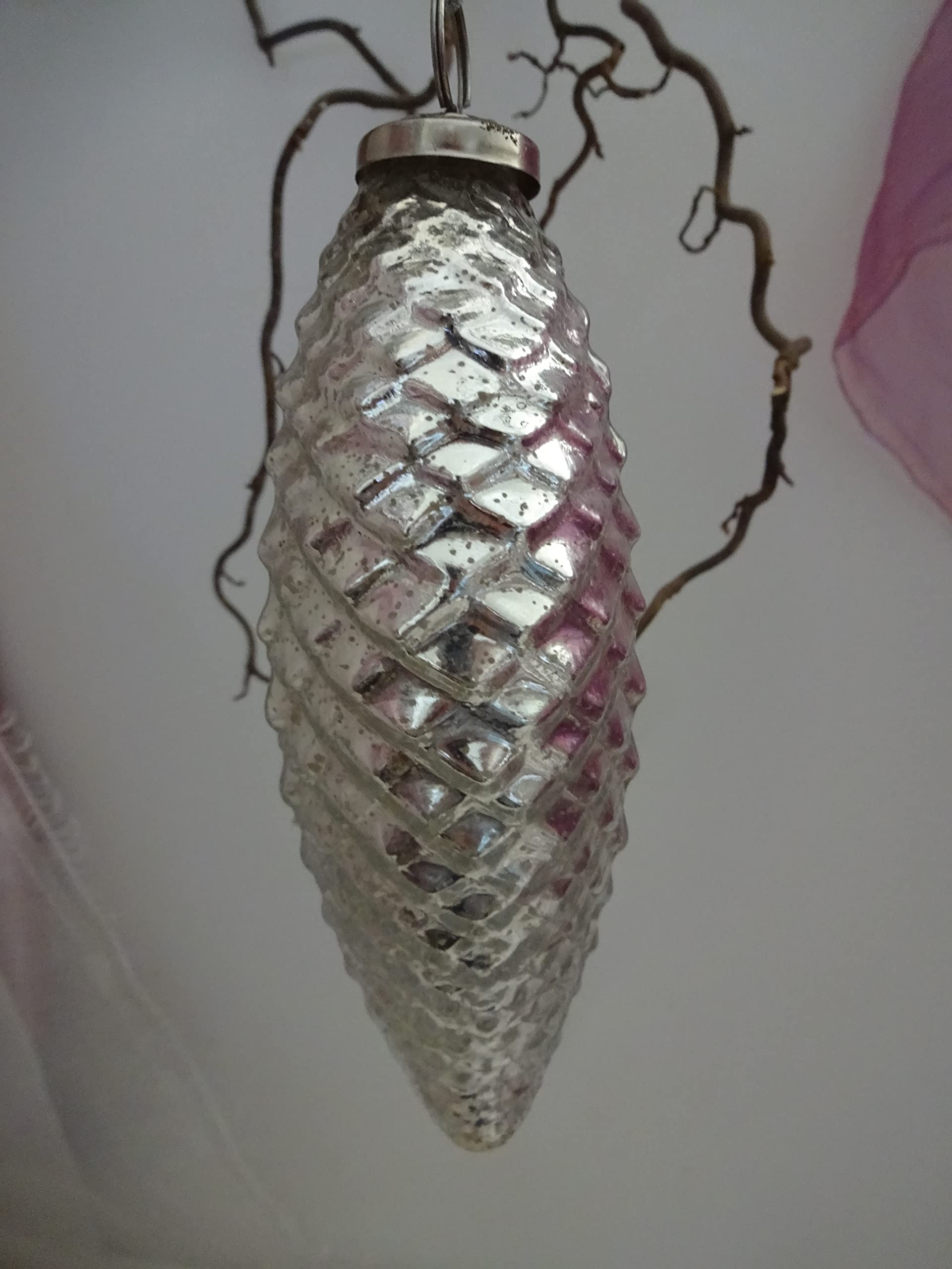 Weihnachtlicher Glanz für deinen Baum! 🎄 Dieser wunderschöne Zapfen-Anhänger aus Glas in antiksilber bringt festlichen Glanz in dein Zuhause.