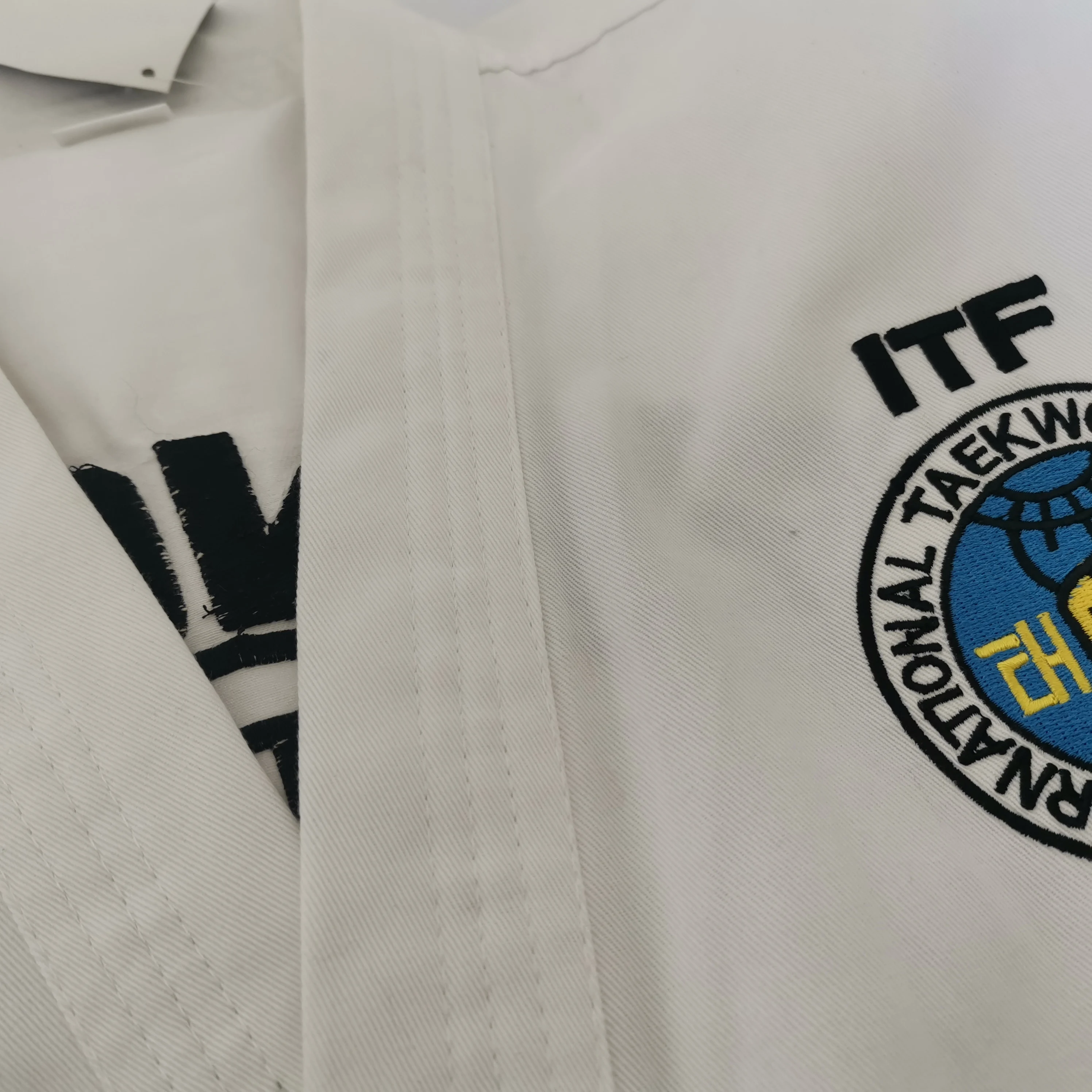 Ready für den nächsten Grad! Dieser ITF Taekwondo-Anzug ist perfekt für alle Schwarzgurte vom 1. bis 3. Dan. Aus hochwertigem Polycotton gemischt - robust fürs Training aber trotzdem angenehm zu tragen. Das Komplettset inklusive Jacke und Hose spart dir die Sucherei. Die ITF-Stickereien an Beinen und Rücken sehen echt professionell aus. Der Reißverschluss vorne macht das Anziehen super easy. Ob für Prüfungen, Wettkämpfe oder regelmäßiges Training - dieser Anzug macht was her! Ein Must-Have für jeden ernsthaften Taekwondo-Kämpfer. Sieh aus wie ein Profi und fühl dich wohl in deiner Uniform!
