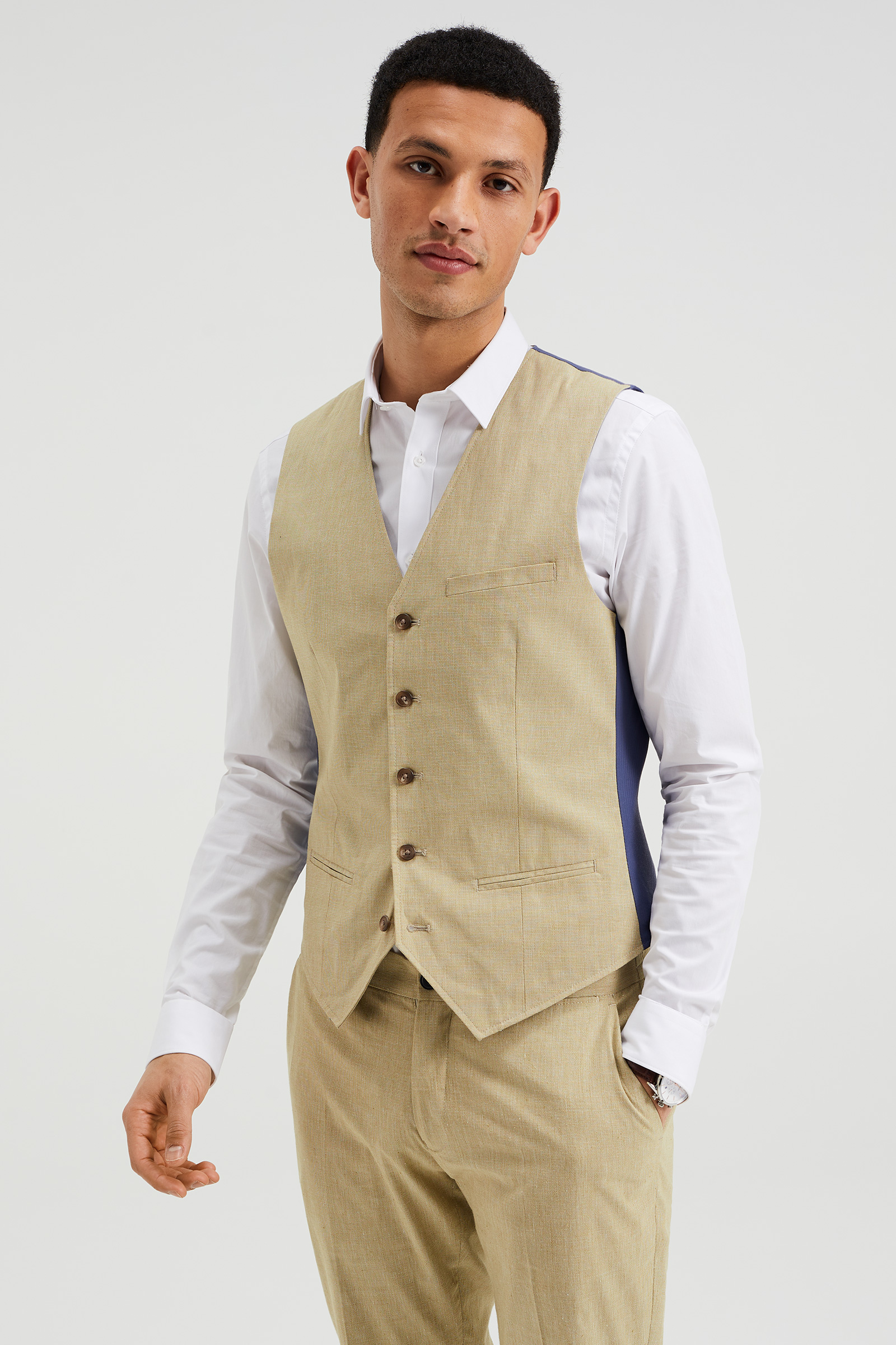 Style-Upgrade für deinen Anzug! Diese britische Slim-Fit Weste bringt deinen Formal-Look aufs nächste Level. Perfekt für den Sommer 2025 - aber natürlich auch für Frühling und Winter tragbar.
