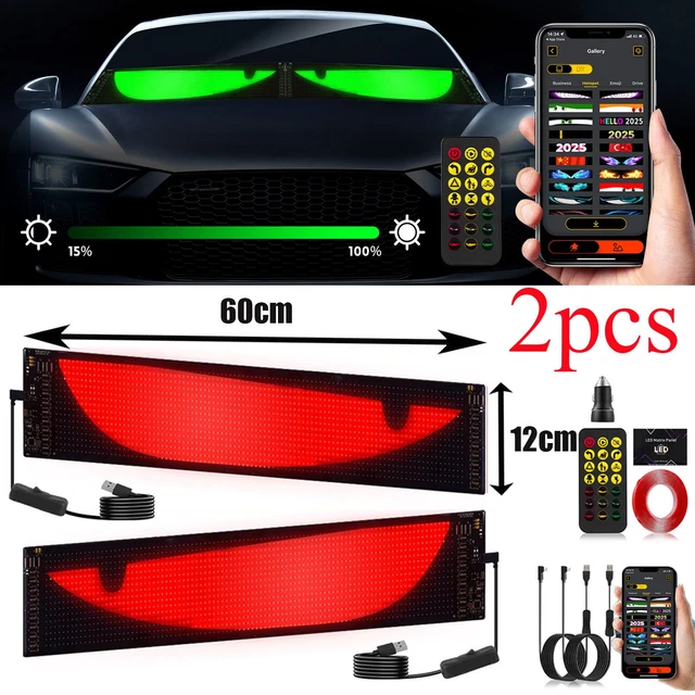 2x Devil Eyes LED Displays 12x60cm - App Steuerbar, IP65 Wasserdicht Für Auto & LKW