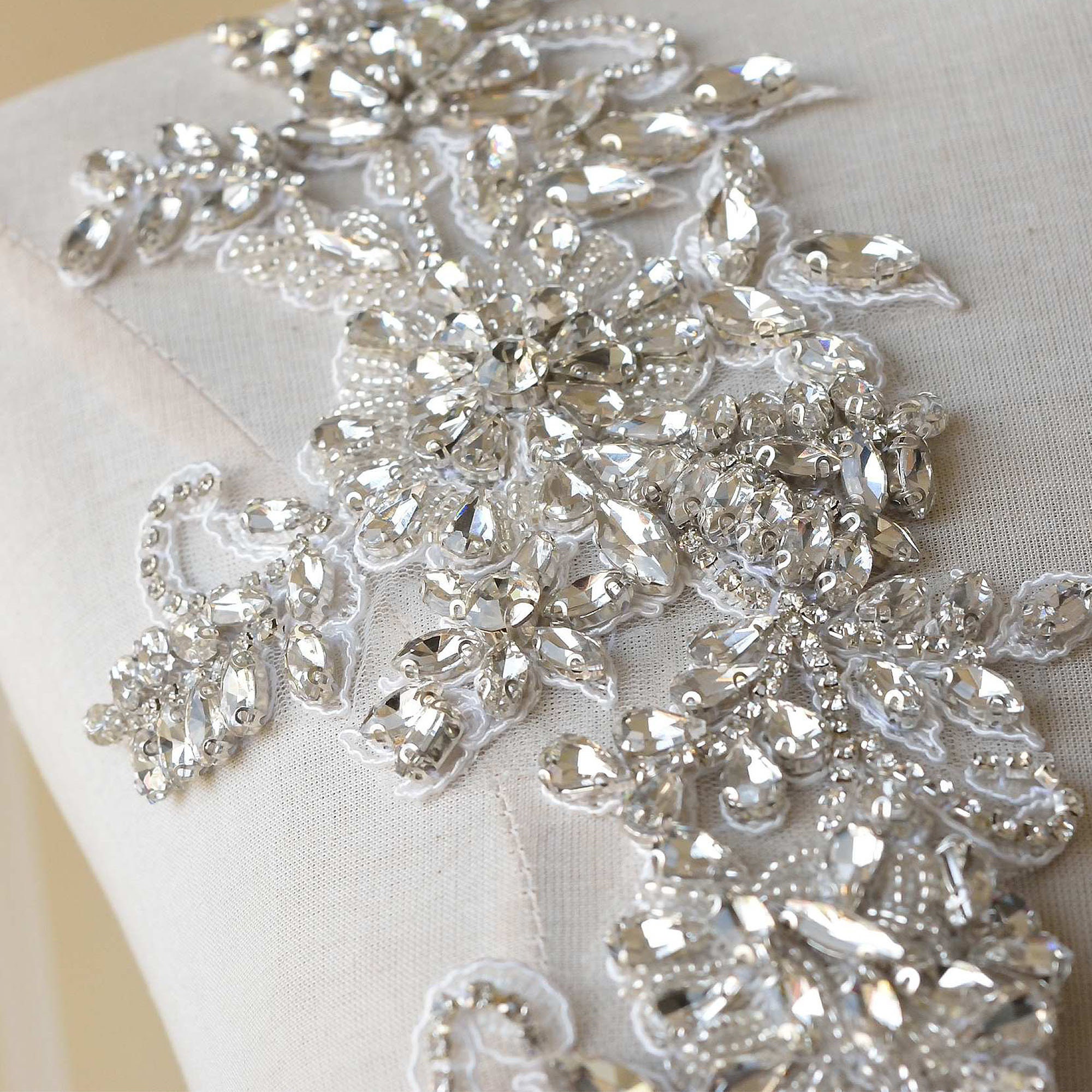 Wunderschöne Strass-Applikationen für deine DIY-Projekte! Die goldenen Blumen-Motive sind mit funkelnden Strasssteinen und Perlenketten verziert. Mit 118mm Breite und 310mm Länge perfekt für Brautkleider, Abendmode oder Accessoires. Die Organza-Rückseite macht das Aufnähen super einfach - einfach aufbügeln oder annähen. Hochwertige Materialien die nicht verblassen oder brechen. Verleihe deiner Kleidung einen eleganten Glamour-Faktor - ob für Hochzeiten, Partys oder besondere Anlässe!
