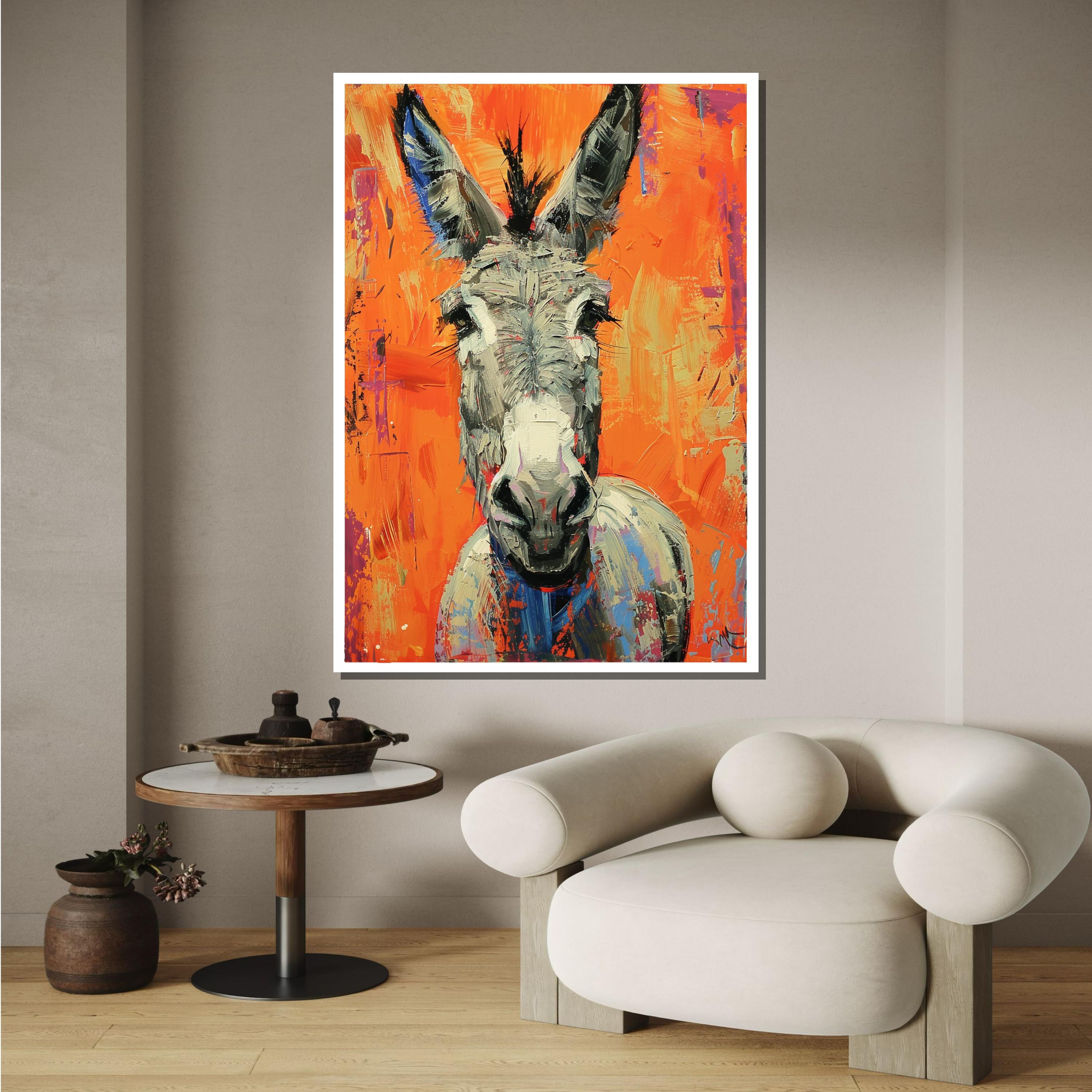 Farbenfrohes Esel Aquarell Leinwandbild - Modernes Tierporträt Für Wohnzimmer & Büro 30x45 Cm
