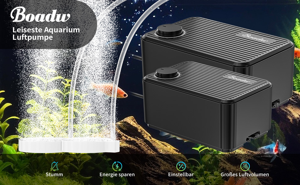 Aquarium Luftpumpe 8W - Leise Sauerstoffpumpe Regelbar Mit Zubehör
