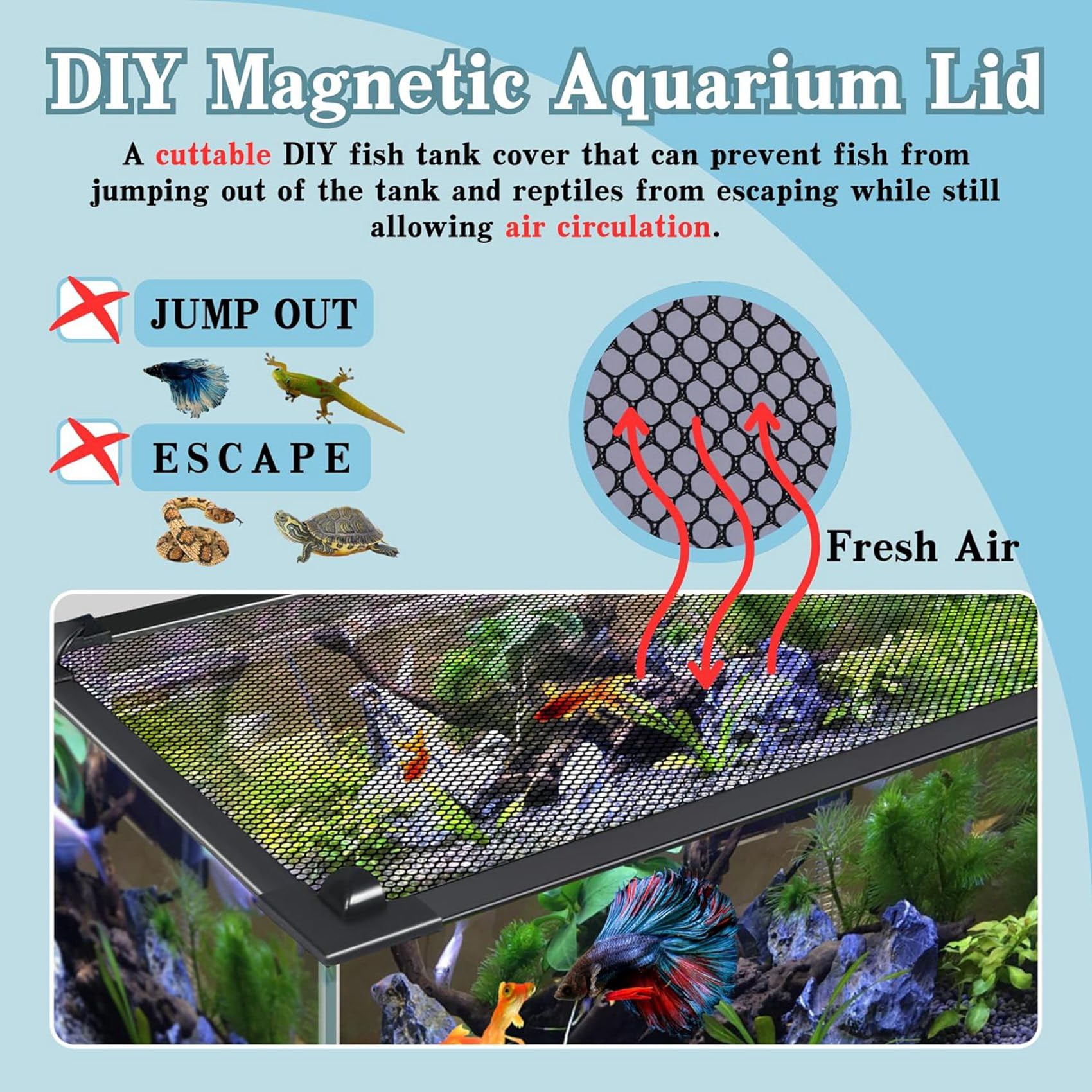TGDGFKIAS Aquarium Netzabdeckung - Magnetisch Mit Anti-Sprung Schutz