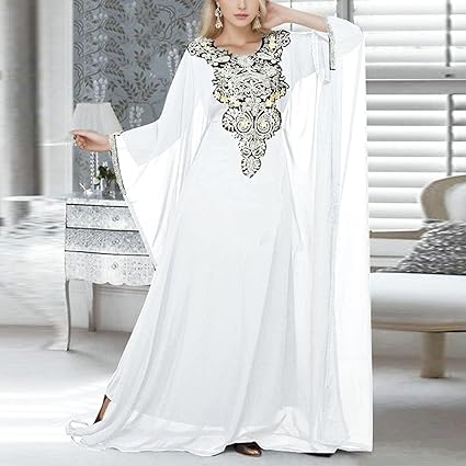 Damen Arabisch Abaya Kleid - Langarm Kaftan Mit Spitze Stickerei