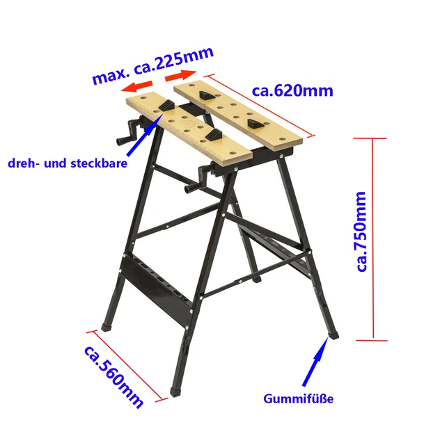 Handwerker, aufgepasst! Diese Werkbank von DEDRA ist dein neuer bester Freund in der Werkstatt. Mit 100 kg Tragkraft hält sie auch schwere Materialien problemlos aus. Die Arbeitsplatte ist verstellbar und hat eine eingedruckte Millimeterskala - super praktisch für genaues Arbeiten. Integrierte Spannbacken halten dein Werkstück sicher fest. Aus stabilem Stahl und 18 mm starken MDF-Platten - richtig robust. Nach getaner Arbeit einfach zusammenklappen und platzsparend verstauen. Perfekt für Hobbyhandwerker oder Profis, die mobil sein müssen. Endlich ein fester Arbeitsplatz, der nicht viel Platz wegnimmt! Einfach aufbauen, losschrauben und wenn du fertig bist, wegpacken. So macht Arbeiten Spaß!