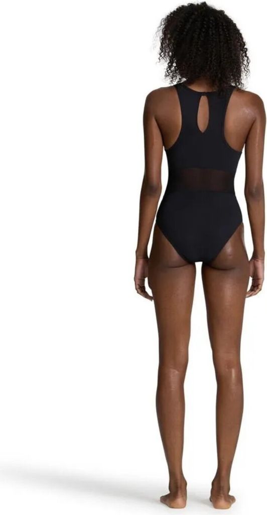 Wow, dieser Badeanzug von arena vereint Style und Performance perfekt! Die transparenten Mesh-Einsätze an den Seiten sehen nicht nur mega-modern aus, sondern sorgen auch für ein super-angenehmes Tragegefühl im Wasser. Perfekt fürs Bahnenschwimmen, Aqua-Fitness oder einfach entspannte Pool-Tage.\\n\\nDas Material besteht zu 74% aus recyceltem Polyamid - gut für die Umwelt und super für dich: chlorbeständig, schnell trocknend und super formstabil. Der mittlere Beinausschnitt gibt dir volle Bewegungsfreiheit, während das Swim Pro Back-Design mit stabilen Trägern für perfekten Halt sorgt - selbst bei intensivem Training.\\n\\nTipp: Fällt etwas klein aus, nimm einfach eine Größe größer! In timeless Schwarz mit den raffinierten Mesh-Details siehst du darin sowohl im Wasser als auch am Poolrand einfach klasse aus. Für alle Frauen, die Wert auf Qualität, Komfort und nachhaltige Mode legen. Dein neuer Lieblings-Badeanzug wartet!
