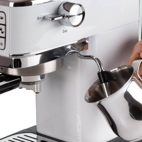 Kaffee-Liebhaber aufgepasst! Diese Ariete Espresso Maschine bringt italienisches Barista-Feeling in deine Küche! Mit nur 14 cm Breite passt sie auch in die kleinste Ecke. Das coole Manometer zeigt dir genau an, was im Inneren passiert - so kannst du deinen Kaffee perfekt einstellen. 15 Bar Druck sorgen für das typische Crema-Häubchen auf dem Espresso. Du kannst sowohl Kaffeepulver als auch praktische ESE-Pads verwenden - wie im Café! Die Cappuccino-Düse macht cremigen Milchschaum für perfekte Cappuccinos und Latte Macchiatos. Und mit dem Heißwasserspender machst du im Handumdrehen Tee oder Kräuteraufgüsse. Automatische Abschaltung nach 25 Minuten, Tropfstopp und Reinigungsanzeige sorgen für Komfort und Sicherheit. Ob morgens zum Wachwerden oder nachmittags zum Genießen - mit dieser Maschine wird jede Tasse Kaffee ein Erlebnis! Hol dir den Italien-Urlaub nach Hause - jeden Tag!
