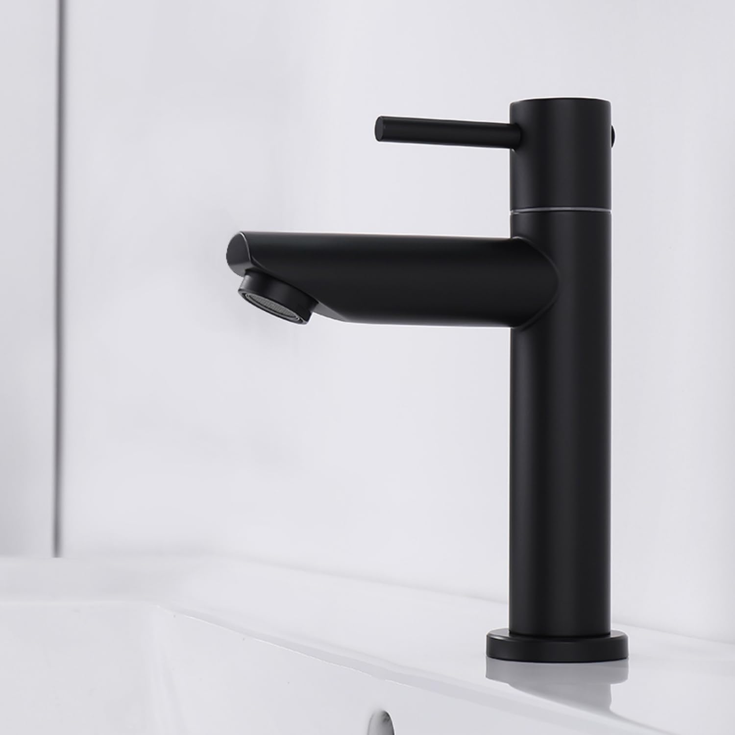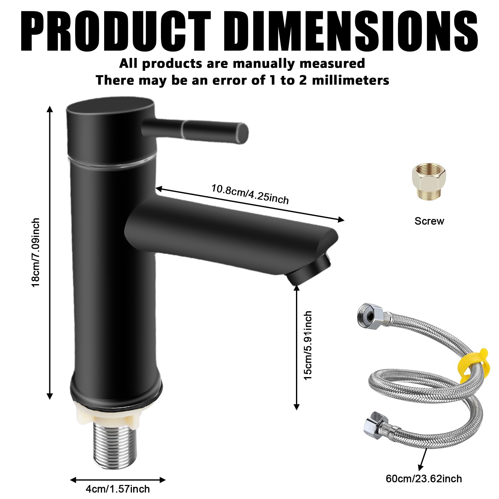 Ein neuer Wasserhahn für dein Gäste-WC oder Badezimmer? Dieser schwarze Kaltwasserhahn macht was her! \\n\\nEr ist aus hochwertigem 304 Edelstahl - das bedeutet: rostfrei, langlebig und pflegeleicht. Die mattschwarze Oberfläche ist kratzfest und zeigt kaum Fingerabdrücke oder Wasserflecken. \\n\\nDer Hahn kommt mit einem 60cm langen flexiblen Anschlussschlauch. Die Installation ist super einfach und passt für die meisten Standard-Anschlüsse (3/8 Zoll). Auch als Heimwerker-Anfänger kriegst du das hin! \\n\\nDas elegante, schlichte Design passt zu jedem Einrichtungsstil - ob modern, industrial oder skandinavisch. Der Hahn verleiht deinem Badezimmer sofort einen edlen Touch. \\n\\nPerfekt nicht nur fürs Gäste-WC, sondern auch für Garage, Wohnwagen, Hotelzimmer oder den Balkon. Überall dort, wo du nur kaltes Wasser brauchst. \\n\\nWarum teure Markenprodukte kaufen, wenn dieser Hahn genauso gut funktioniert? Qualität muss nicht immer teuer sein! \\n\\nHol dir diesen stylischen Wasserhahn und upgrade dein Badezimmer im Handumdrehen.