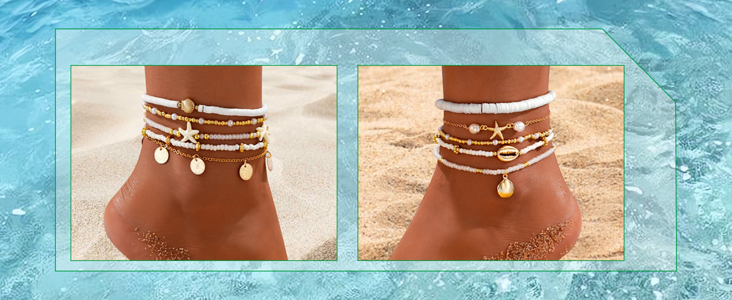 Muschel Armbänder Set Damen - Boho Style Mit Perlen & Elastik