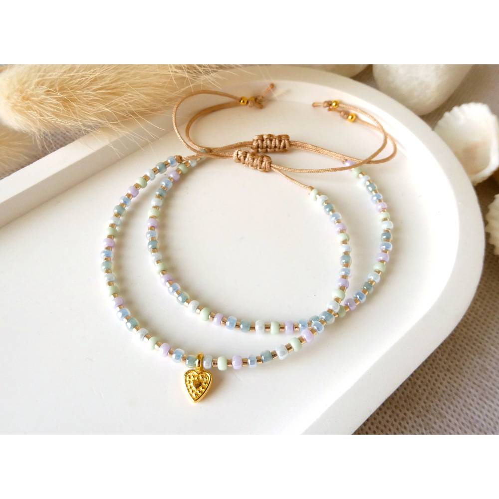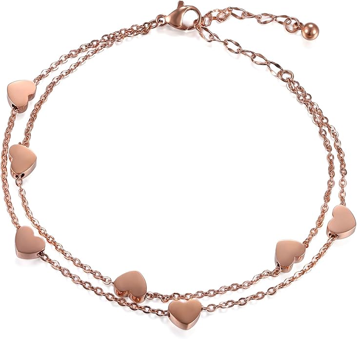 OIDEA Damen Armband Mit Doppelkette & Herz-Anhänger - Elegant Verstellbar Als Armkette Oder Fußkettchen