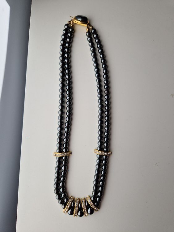 Hämatit Armband Stretch - Schwarze Perlen Mit Goldakzenten