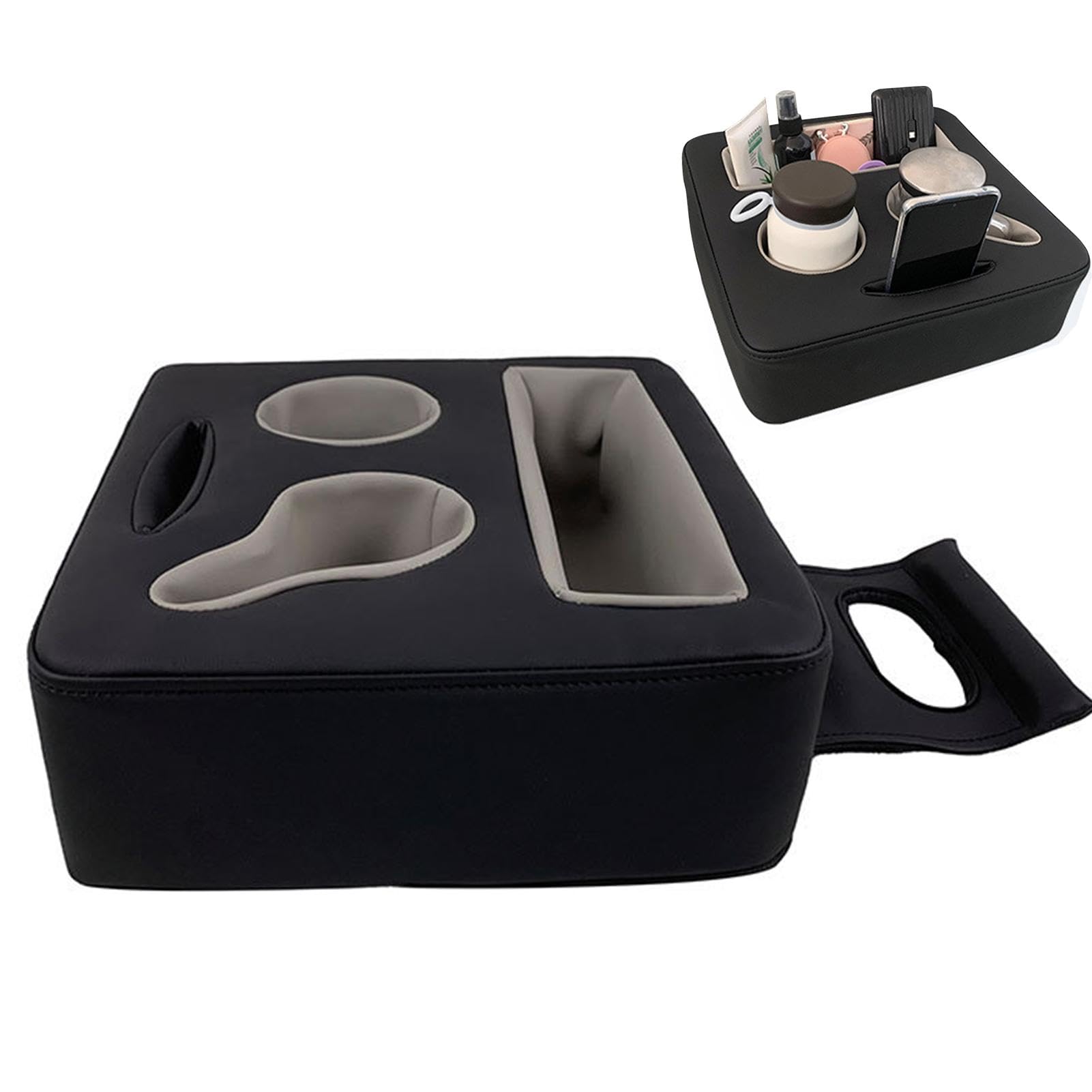 Mehr Komfort im Auto! Diese Armlehnenbox verlängert deine Mittelkonsole und bietet extra Stauraum. Mit zwei integrierten Getränkehaltern - praktisch für Coffee to go oder Wasserflaschen. Maße: 35x22x13 cm, passt auf die meisten Armlehnen. Aus weichem Leder und Samt für angenehmen Armkomfort auf langen Fahrten. Ohne Werkzeug montierbar - einfach aufstecken und feste Gummibänder sichern. Perfekt für SUV, PKW oder LKW. Endlich mehr Platz für Handy, Schlüssel und Kleinkram. Mach deine Fahrten bequemer!