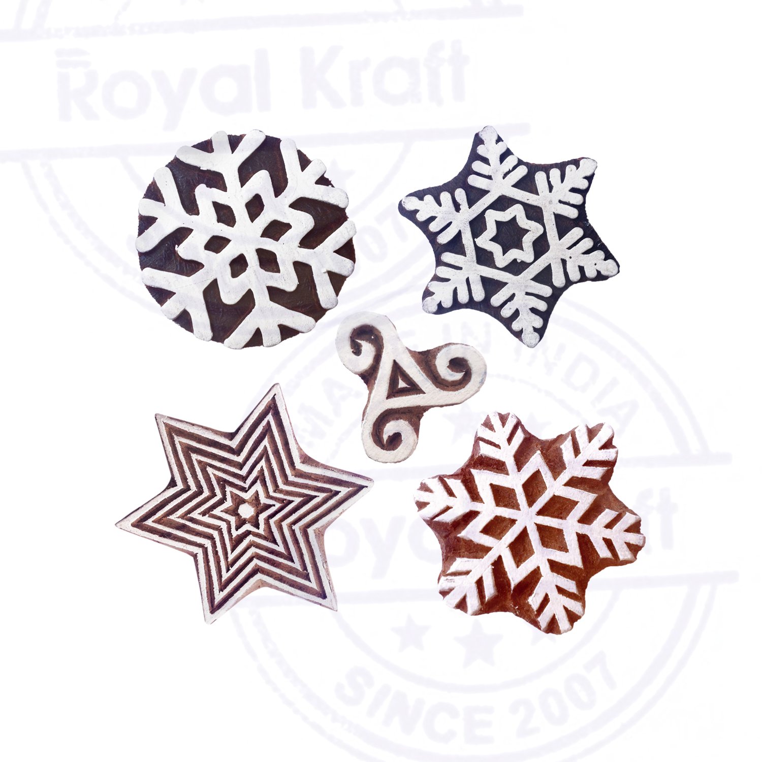Arty Crafty Designs Holzstempel Set - Sterne & Schneeflocken (5 Stück)