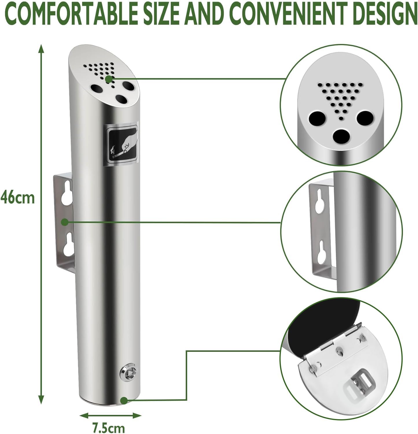 2 Stück Aschenbecher Wandmontage Edelstahl - Outdoor Aschenbecher Mit Schloss Für Bar, Restaurant
