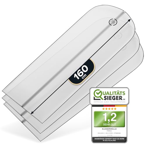 Schluss mit Motten, Staub und unschönen Knitterfalten! Dieses 3-teilige Kleidersack-Set ist die perfekte Lösung für deine wertvollen Kleidungsstücke. Die transparenten Hüllen aus hochwertigem PEVA-Material sind nicht nur super robust, sondern auch absolut geruchlos und sicher für deine Kleidung. Das geniale transparente Fenster-Design ermöglicht dir einen schnellen Blick auf den Inhalt, ohne dass du die Hülle öffnen musst. Der hochwertige Metallreißverschluss läuft butterweich und klemmt nicht! Besonders praktisch: Die Kleidersäcke sind maschinenwaschbar und damit super einfach zu reinigen. Perfekt für Anzüge, Mäntel, Jacken, Kleider und Hemden - ob im heimischen Kleiderschrank oder auf Reisen. Die atmungsaktive Eigenschaft verhindert unangenehme Gerüche und Schimmelbildung. Einfach zusammenfalten und platzsparend verstauen - ideal auch für den Camper oder Wohnmobil! Mit den Maßen 60x80cm passen selbst lange Wintermäntel problemlos hinein. Deine Kleidung bleibt immer sauber, frisch und gut geschützt - so macht Ordnung halten richtig Spaß!