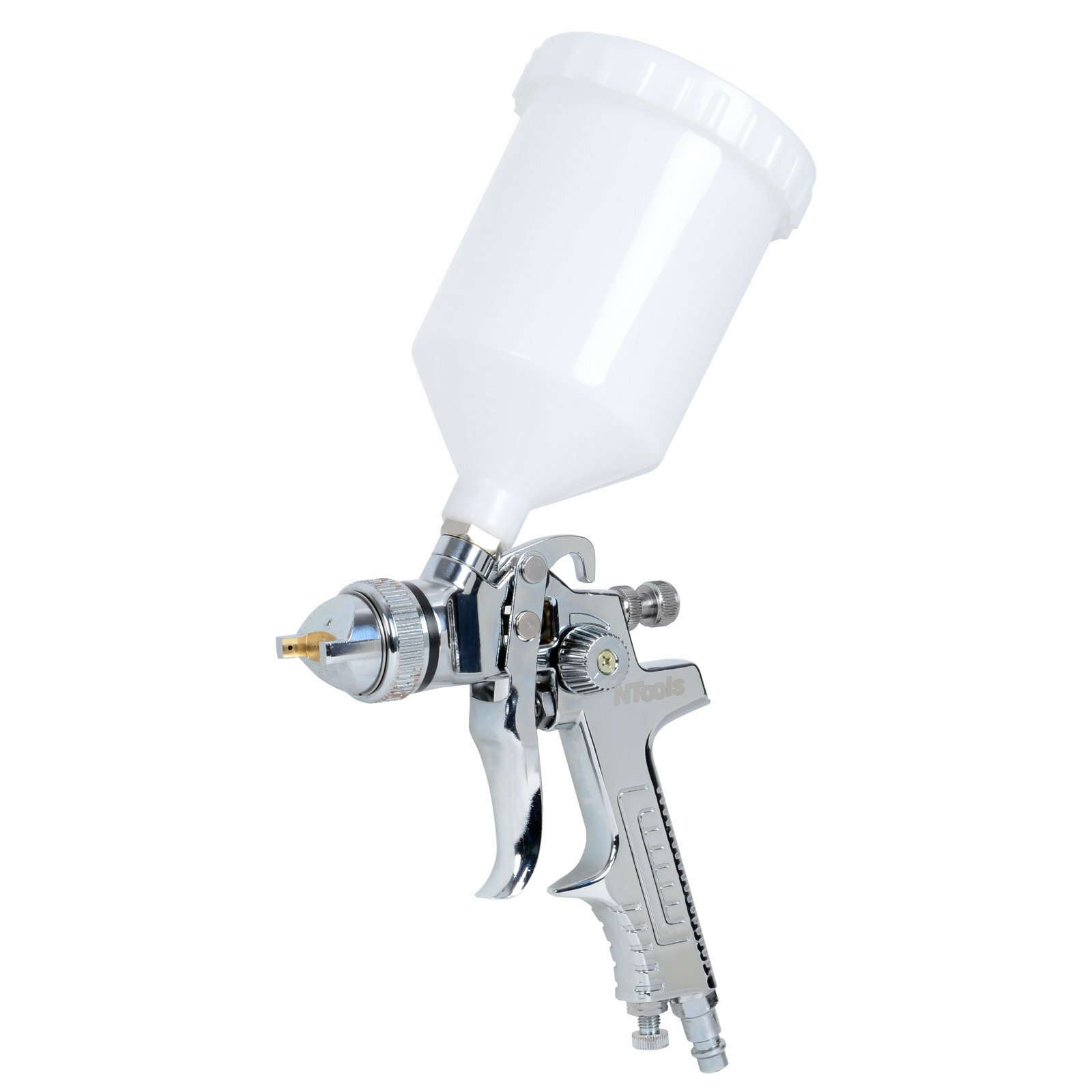 Drei Einstellungen: Farbe, Strahl und Druck. Perfekt für Acryllacke, Metallic, Holzbeizen und mehr. Luftverbrauch: 280-340 l/min.