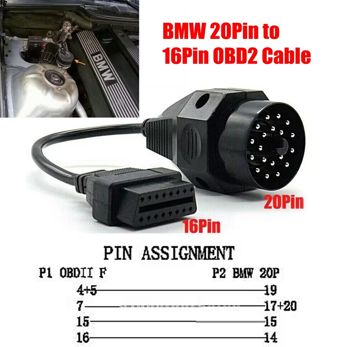 VOBOR OBD2 Adapter 20 Auf 16 Pin - Diagnosekabel Für BMW E36 E38 E39 E46 E53 X5 Z3