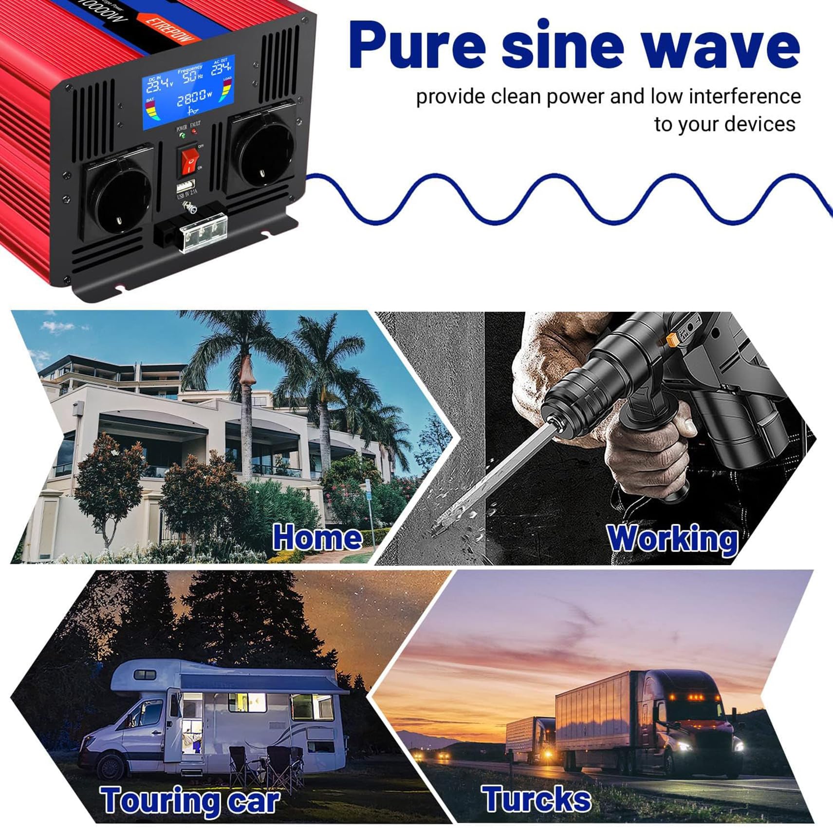 ETREPOW Wechselrichter 500W 12V Auf 230V - Reiner Sinus Für Auto & Wohnmobil