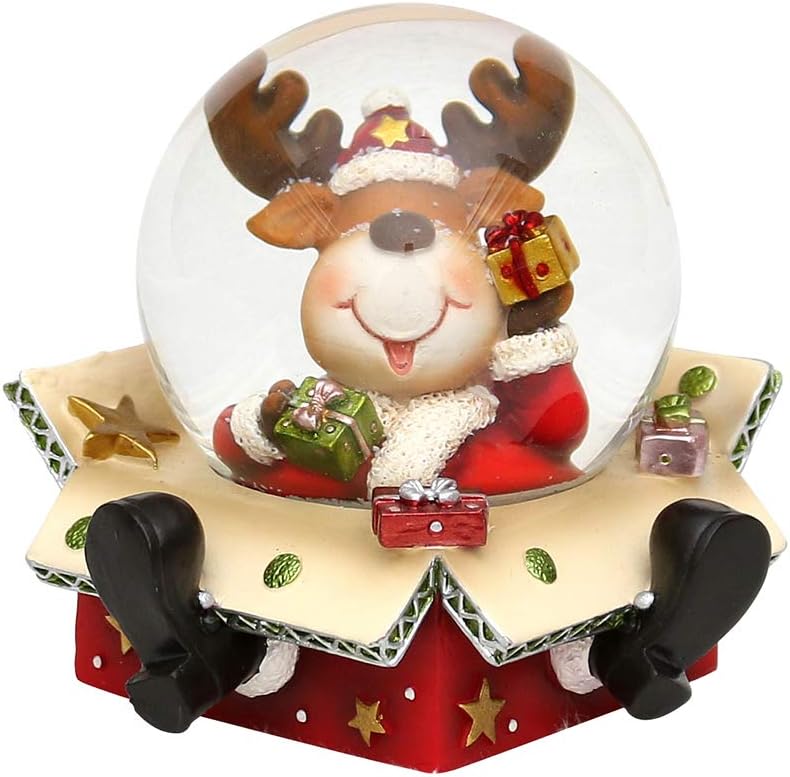 Wie cool ist das denn? Ein Weihnachtsmann auf einem Roller - und auf dem Gepäckträger eine Schneekugel! Diese lustige Weihnachtsdekoration bringt garantiert jeden zum Schmunzeln. Der Weihnachtsmann fährt auf einem hellgrünen Roller, ein kleiner Hund guckt aus dem Fußraum und auf dem Gepäckträger steht die Schneekugel mit einem Tannenbaum drin. Einfach die Kugel schütteln und schon wirbeln die Schneeflocken - magisch! Mit 11x6x11 cm passt die Figur perfekt auf jeden Tisch, Kaminsims oder ins Regal. Aus hochwertigem Polyresin gefertigt, wird sie dich viele Weihnachtsfeste begleiten. Ein super Geschenk für alle, die es etwas anders mögen. Bring frischen Wind in deine Weihnachtsdekoration mit diesem außergewöhnlichen Stück!