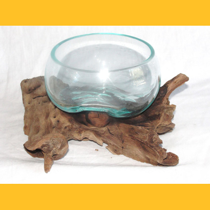 Mundgeblasene Glasschale Auf Treibholz - Einzigartige Tischdeko