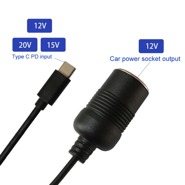 USB-C Auf Zigarettenanzünder Adapter 1,2m - 12V Konverter Mit Spannungsanzeige