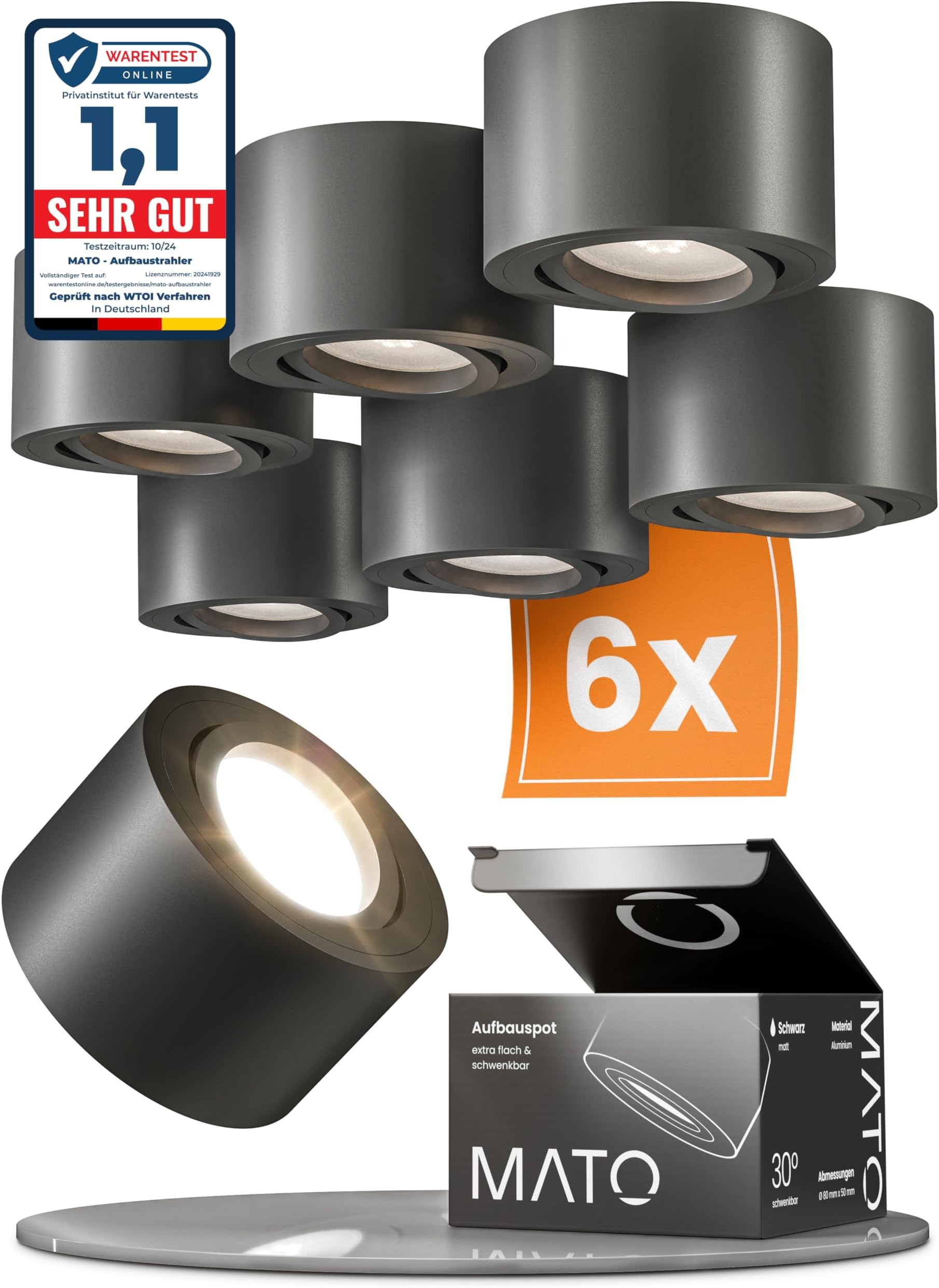 Super flache LED-Spots für deine Decke! Nur 82x52 mm groß, aber voller Leistung: 5W mit 3 Farbtemperaturen (2700K warmweiß, 4000K neutral, 5700K kaltweiß). 30° schwenkbar für flexibles Licht. Triac-dimmbar für stimmungsvolle Beleuchtung. Einfache Aufputz-Montage - kein Einbau nötig. Perfekt für Wohnzimmer, Flur, Küche. Moderne Beleuchtung, die sich anpasst!