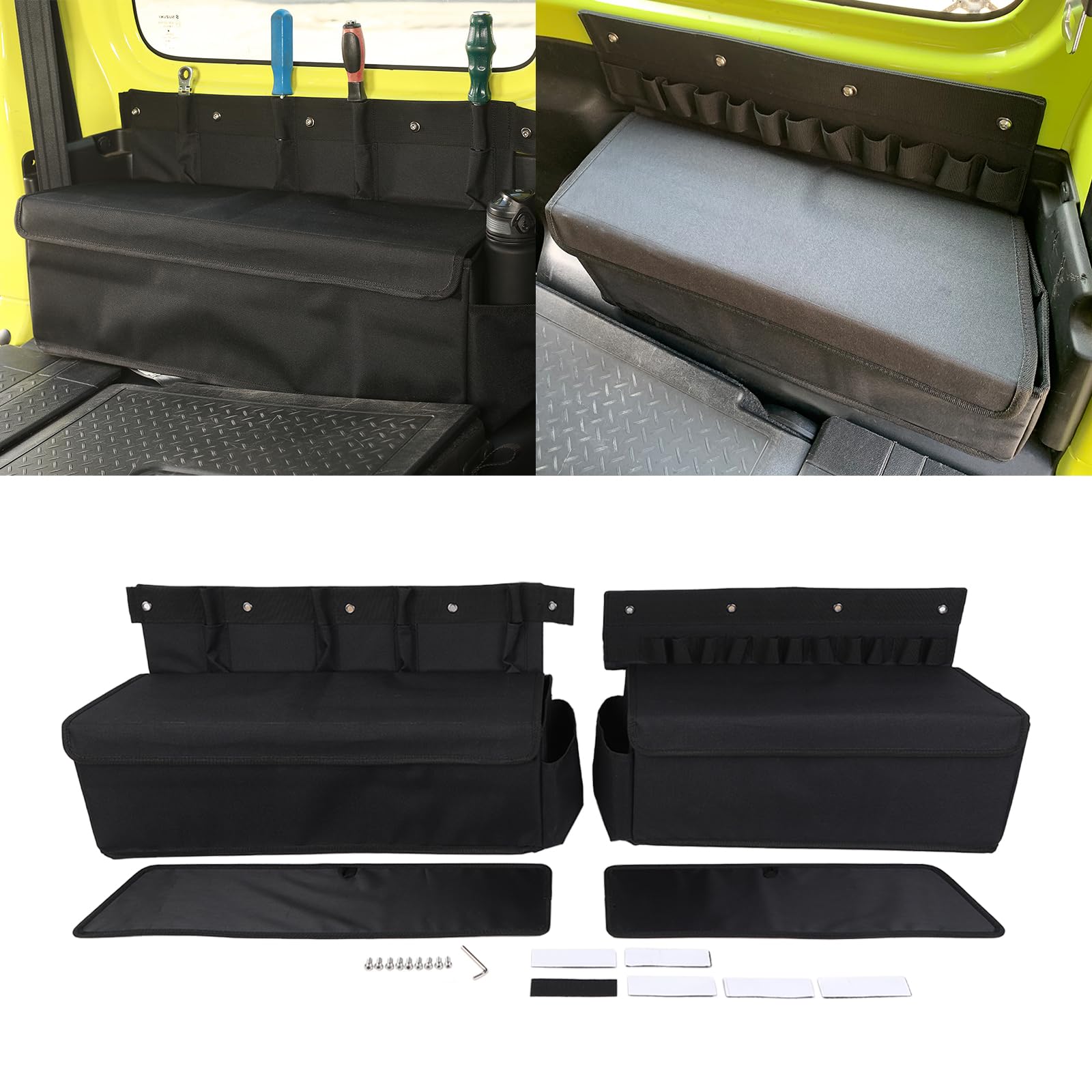 Hey Jimny-Fahrer! Diese praktischen Aufbewahrungsboxen für die Türarmlehnen sind ein echter Game-Changer für deinen Suzuki. Endlich hast du ordentlichen Stauraum für all die kleinen Dinge, die im Auto immer rumfliegen. \\n\\nEinfach in die Türarmlehne klicken - kein Werkzeug nötig! Die rutschfeste Innenmatte sorgt dafür, dass nichts verrutscht und reduziert gleichzeitig lästige Geräusche. Perfekt für Sonnenbrillen, Münzen, Karten, Stifte oder dein Handy. \\n\\nAus hochwertigem ABS-Kunststoff sind die Boxen robust und langlebig. Im 2er-Set bekommst du für beide Seiten was - super praktisch! Und das schwarze Design fügt sich perfekt ins Interieur ein. \\n\\n• Kompatibel: Suzuki Jimny JB64/JB74 2018-2021 \\n• Material: Hochwertiger ABS-Kunststoff \\n• Farbe: Schwarz \\n• Inhalt: 2x Aufbewahrungsboxen \\n• Features: Rutschfeste Matte, werkzeuglose Montage \\n\\nMach aus deinem Jimny endlich einen ordentlichen Begleiter - damit findest du alles sofort und hast keine Krimskrams mehr auf den Sitzen!