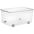 Rotho Clear Aufbewahrungsboxen 4er-Set 10l - Transparent Mit Blauem Deckel BPA-frei