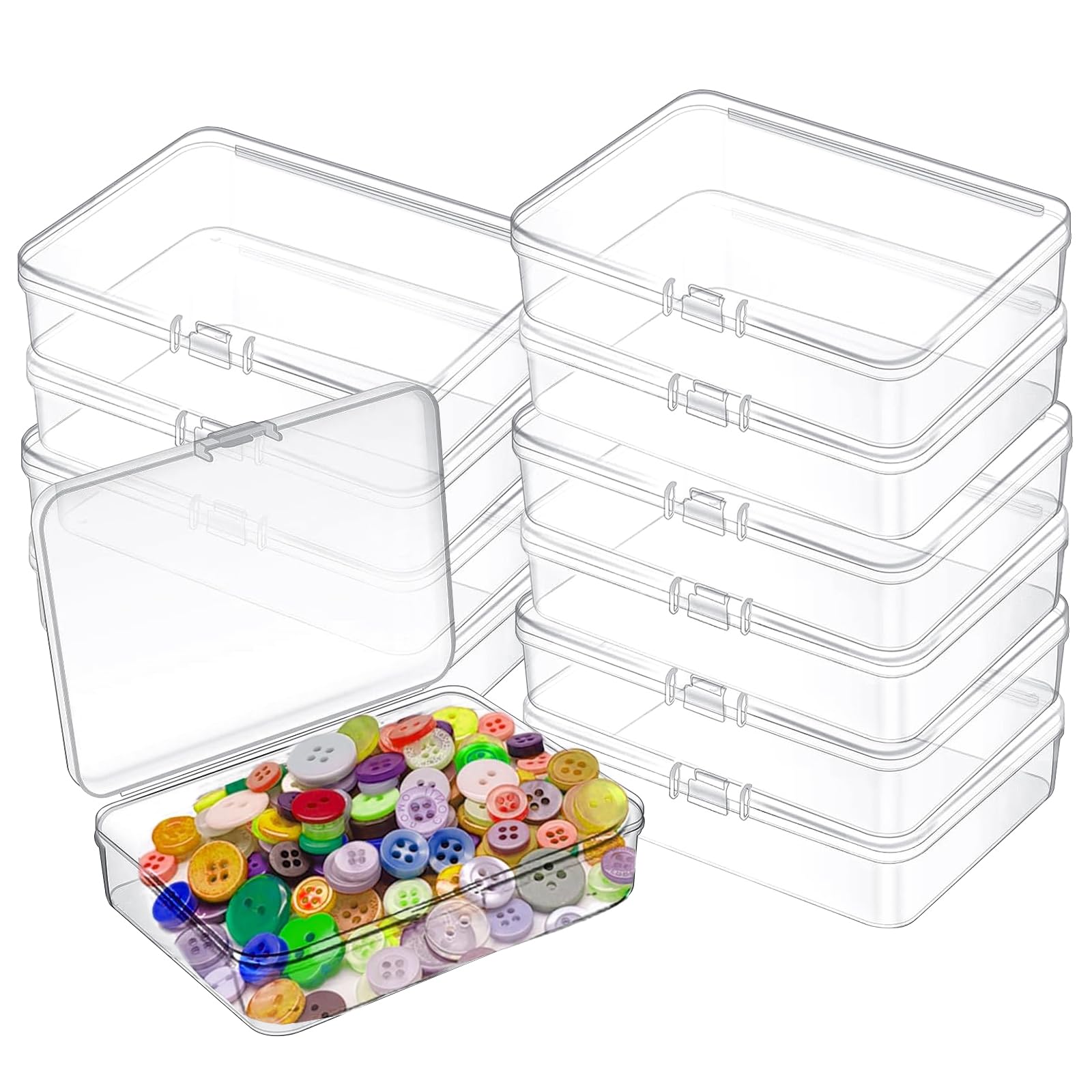 Jede Box misst 5,5x5,5x2 cm und hat einen sicheren Deckel, der ein Herausfallen verhindert. Die transparenten Boxen lassen dich sofort erkennen, was sich darin befindet. Noch praktischer: Sie lassen sich in den mitgelieferten großen Außenboxen (22,5x17,5x6 cm) platzsparend stapeln.