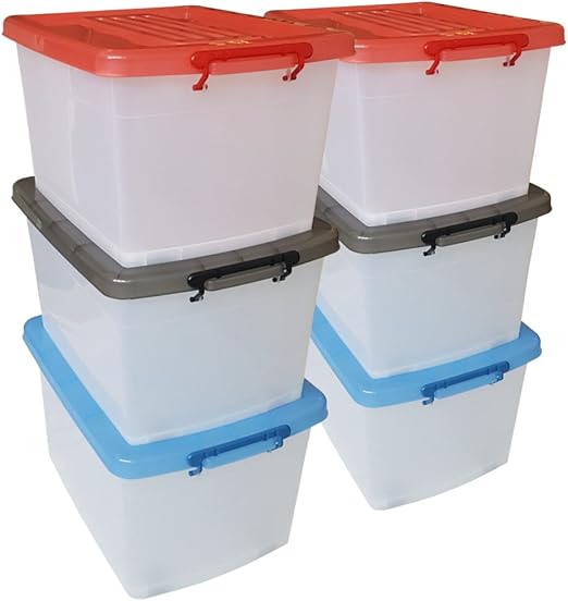POSH 4er-Set Aufbewahrungsboxen 50 Liter - Transparent Mit Rollen & Deckel