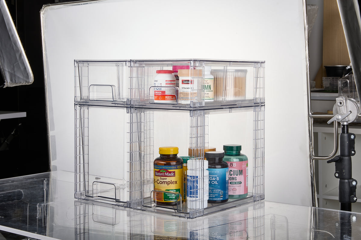 4x Acryl Aufbewahrungsboxen Stapelbar - 18cm Schubladen Organizer Für Bad & Küche