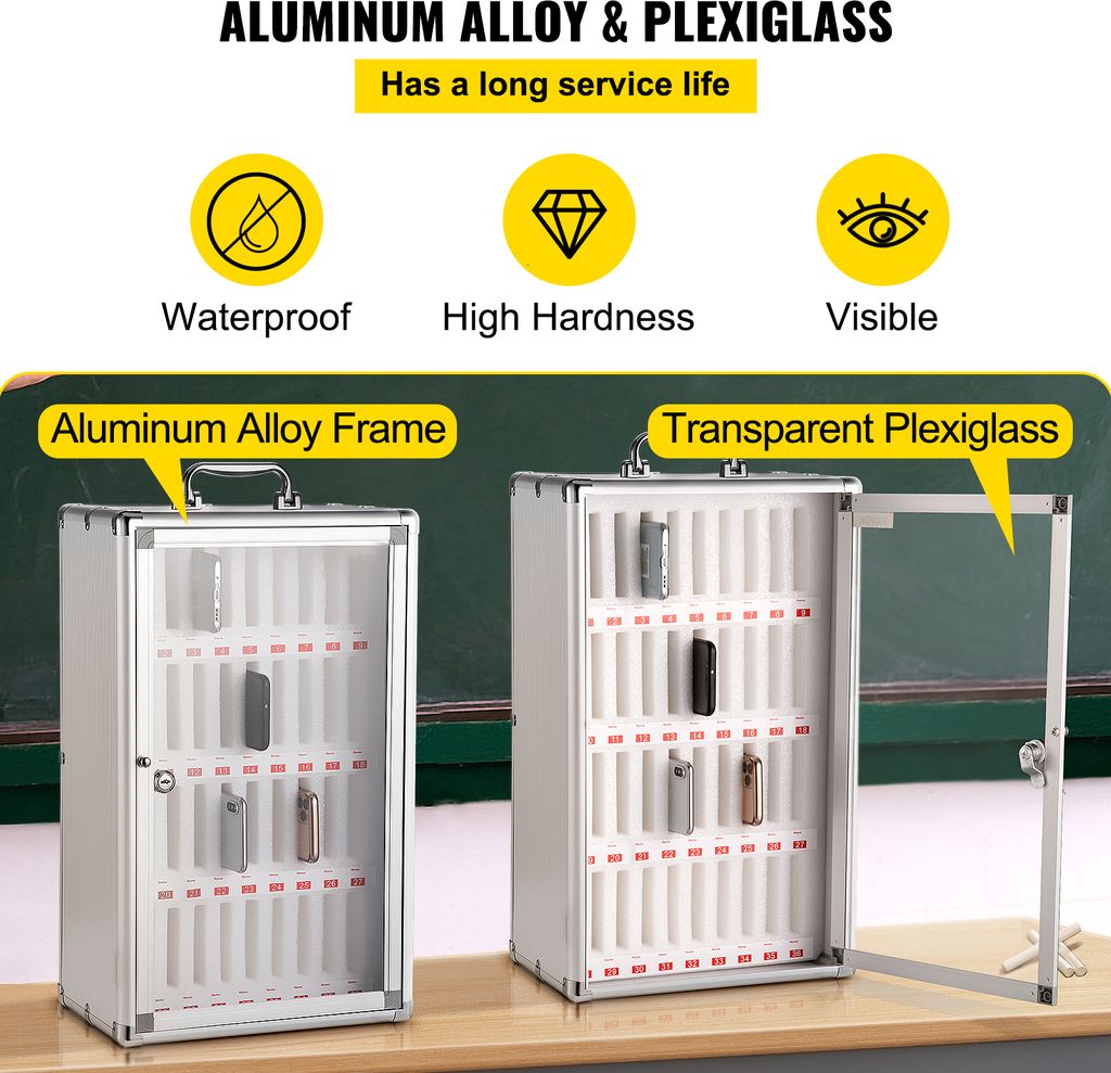 Schluss mit herumliegenden Handys in Meetings oder Klassenzimmern! Dieser praktische Aufbewahrungsschrank aus stabilem Acryl bringt Ordnung in jedes Chaos. Erhältlich in verschiedenen Größen von 4 bis 80 Fächern - da ist für jeden Bedarf die passende Lösung dabei. Jedes Fach misst 18x10x5 cm und bietet genug Platz für Smartphones, kleine Taschenrechner und andere Wertgegenstände. Der transparente Deckel gibt den Blick frei auf den Inhalt, während das integrierte Schloss für Sicherheit sorgt. Perfekt für Schulen, Büros, Konferenzräume oder auch zu Hause. Das nummerierte System eliminiert Verwechslungen - jeder weiß genau, wo sein Gerät ist. Der Schrank kann einfach auf den Tisch gestellt oder an der Wand montiert werden. Die praktischen Griffe machen den Transport zum Kinderspiel. So behältst du immer den Überblick über die Geräte und sorgst gleichzeitig für deren Sicherheit. Ideal für Lehrer, die im Unterricht Handys einsammeln möchten, oder für Unternehmen, die in Meetings ungestört bleiben wollen. Einfach, effektiv und super praktisch!