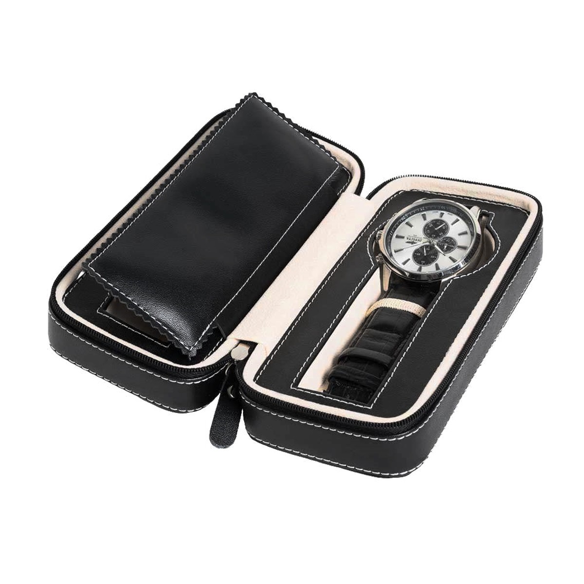 Das hochwertige Perlensamt-Material fühlt sich luxuriös an und schützt empfindliche Oberflächen. Nicht nur für Uhren geeignet - auch Schmuck wie Ketten oder Armbänder sind hier bestens aufgehoben.