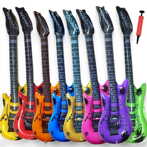 Rockstar-Feeling für die nächste Party! Dieses 6-teilige Set mit aufblasbaren Luftgitarren bringt Stimmung in jede Feier. Jede Gitarre misst 100cm und kommt in knalligen Farben mit dem coolen 'Rock-n-Roll' Aufdruck. Mit praktischen Löchern für Gitarrengurte - so kannst du wie ein echter Rockstar abgehen! Aus schadstofffreiem Material und nach EU-Richtlinien als sicheres Spielzeug zertifiziert. Perfekt für Kindergeburtstage, Karneval, Schulfeiern oder einfach für verrückte Musik-Sessions zu Hause. Leicht aufzublasen und platzsparend zu verstauen. Mach die Luftgitarre zum echten Instrument des Spaßes! Ob als Geschenk, für die Spielekiste oder als Party-Accessoire - hier rockt es gewaltig. Hol dir das komplette Band-Erlebnis für kleine und große Rockfans!