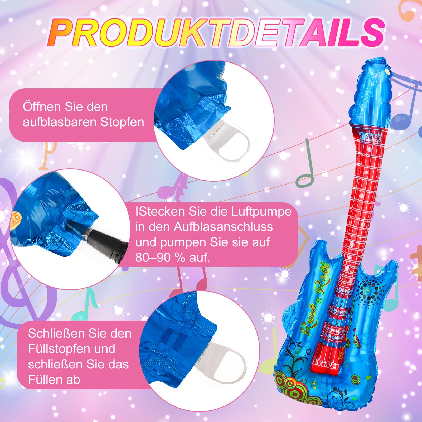 Luftgitarren Set 6 Stück - Aufblasbare Gitarren 100cm Rock-n-Roll