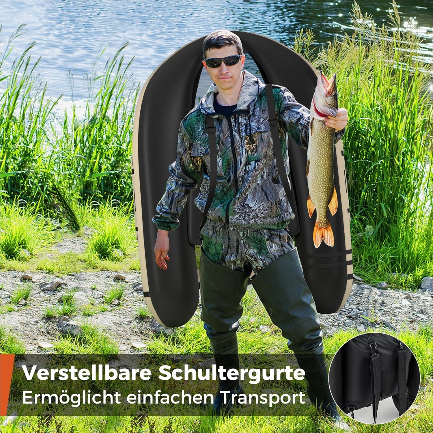 Angeln war noch nie so mobil! Dieses aufblasbare LEADZM Angelboot in Camouflage-Design ist dein perfekter Begleiter für jeden Angelausflug. Mit 130x103x46cm Größe und 150kg Tragkraft hast du reichlich Platz für dich und deine Ausrüstung. Aus robustem 600D Oxford-Gewebe mit dickem PVC-Innenfutter - absolut wasserdicht und stoßfest. Inklusive Handpumpe, Angelrutenhalter, Reparaturset und Aufbewahrungstasche. Verstellbare Gurte und ergonomische Rückenlehne für maximalen Komfort. D-Ring und Fischnetz für praktisches Verstauen. Einfach aufblasen und los geht's - das Angel-Abenteuer kann beginnen!