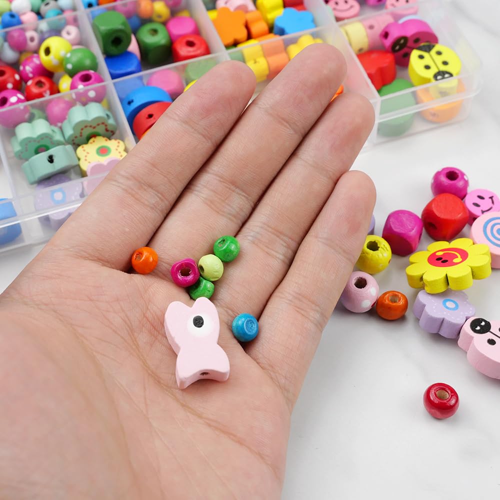 150 Stück Bunte Holzperlen Zum Auffädeln - 2 Größen (16x17mm & 30x20mm) Für DIY Schmuck