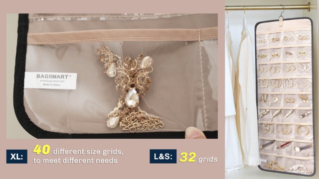 Endlich Ordnung im Schmuckkästchen! Dieser praktische Dewocke Schmuck-Organizer ist deine Rettung gegen das lästige Durcheinander. Einfach aufhängen und schon hast du alle deine Lieblingsteile perfekt sortiert im Blick. Die klaren PVC-Taschen zeigen dir sofort, was wo liegt - kein langes Suchen mehr! Besonders clever: Der Organizer ist beidseitig nutzbar und bietet Platz für Ringe, Ohrringe, Armbänder und Halsketten. Die verschiedenen Taschengrößen und zwei wellenförmige Metallkurven halten jeden Schmuck sicher fest. Perfekt für unterwegs - einfach zusammenrollen und mitnehmen! Das rosafarbene Design sieht dabei noch richtig hübsch aus und wird zur stylischen Deko in deinem Schlafzimmer oder Kleiderschrank. Material: Polyester mit PVC-Taschen. Einfach überall aufhängen - an der Wand, Tür oder im Schrank. Und wenn's mal schmutzig wird: Leicht zu reinigen! Praktischer als jedes Schmuckkästchen und platzsparender obendrein. Für alle, die ihre Schmuckstücke lieben und sie ordentlich aufbewahren wollen!